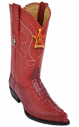 990112 Red Los Altos Boots Caiman Tail Cowboy Western J-Toe Boot, See Note