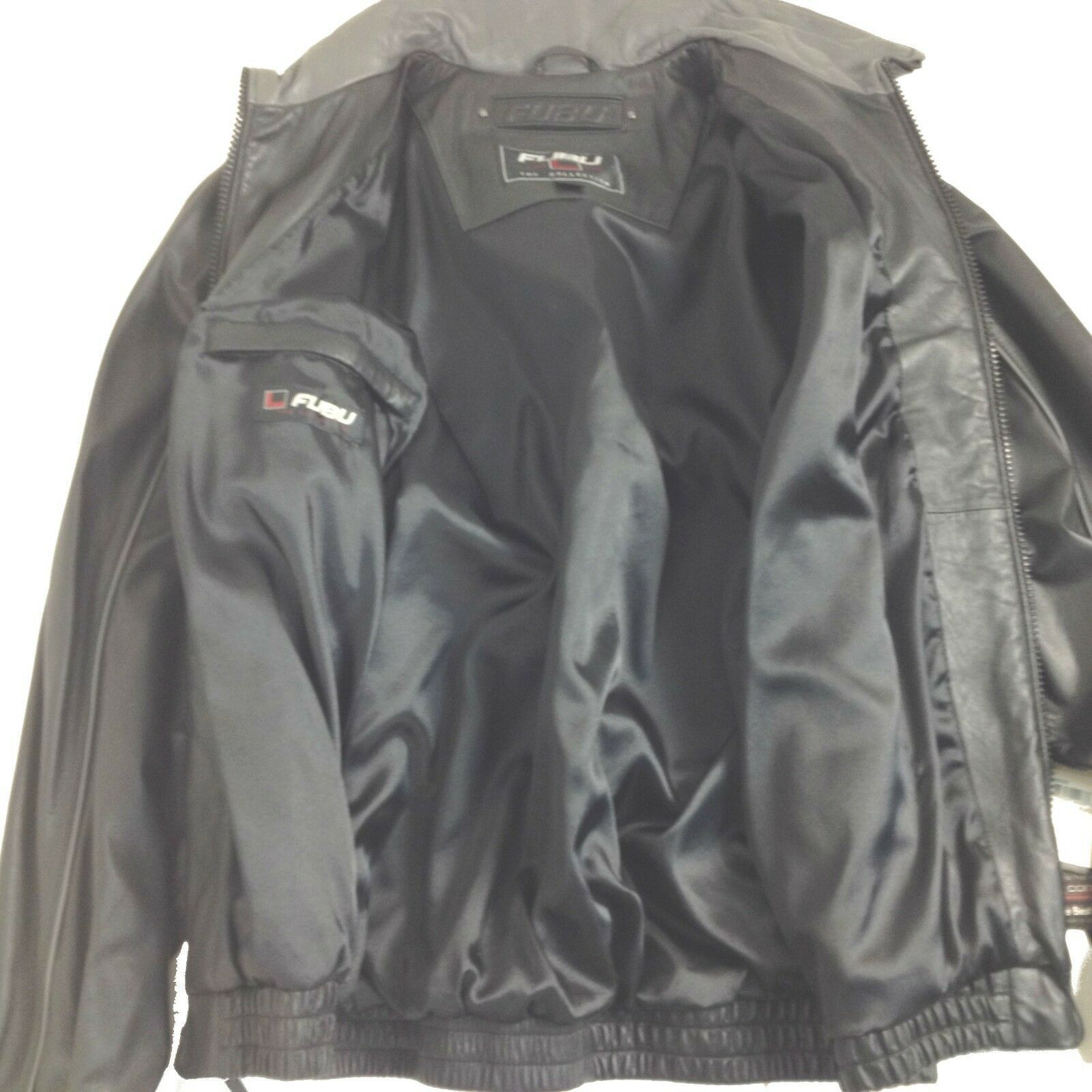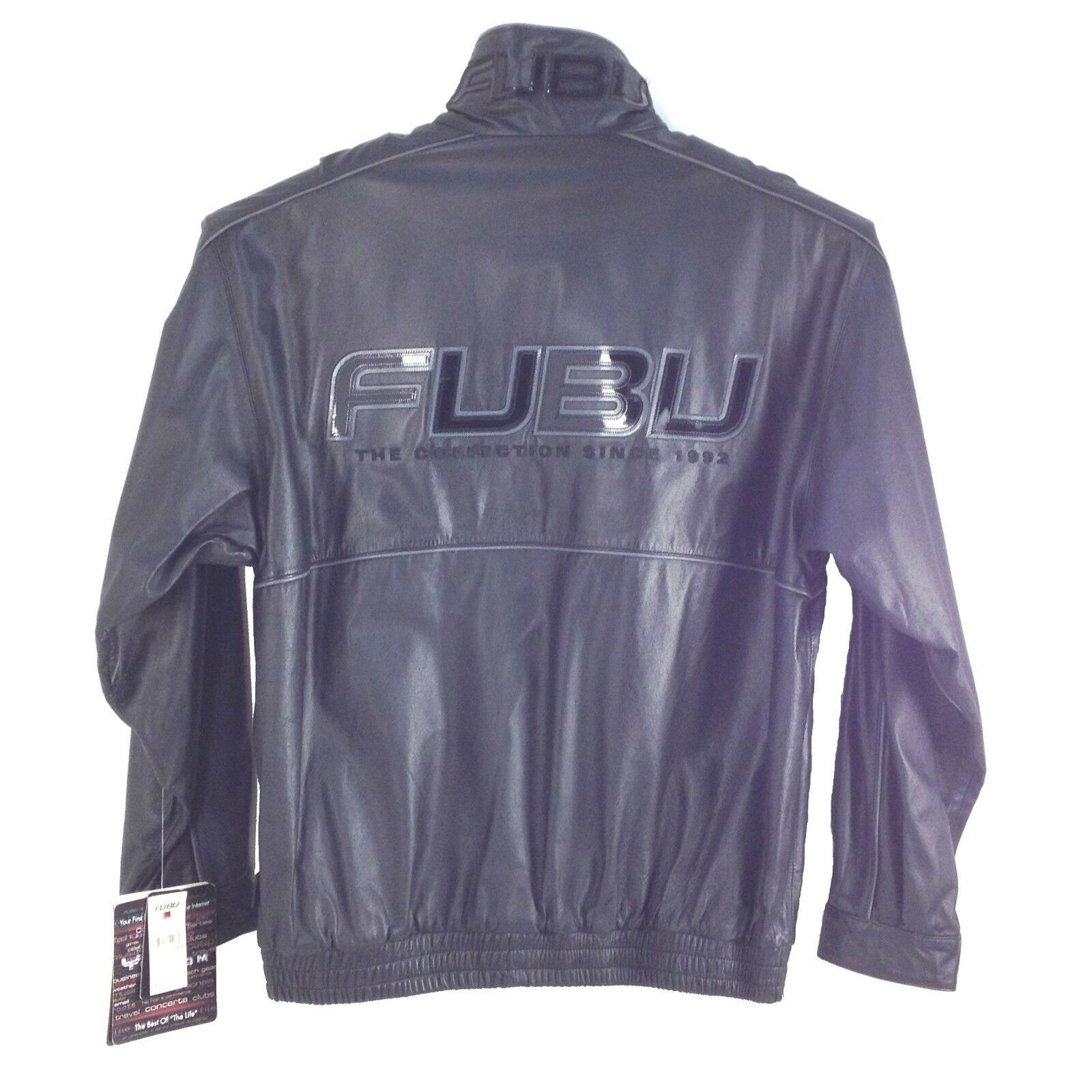 Collar: Leather with FUBU logo on back, Sleeve Cuffs has 2 adjustable snaps and Waist has Elastic Leather rip
