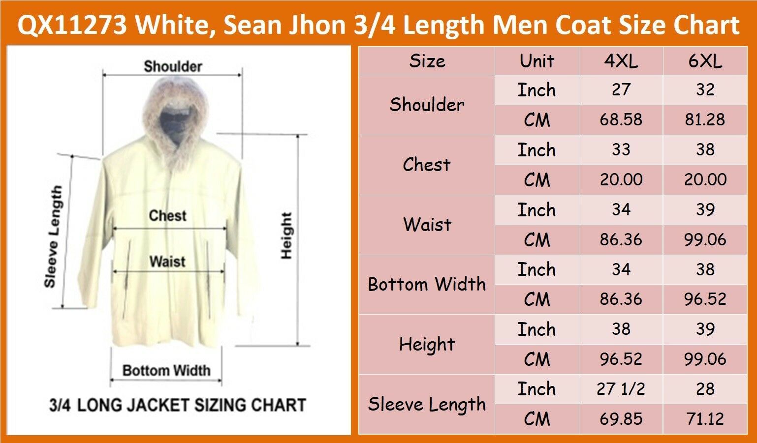 Sean John Signature embossed print on top of Hood, Side Pocket and inside Coat