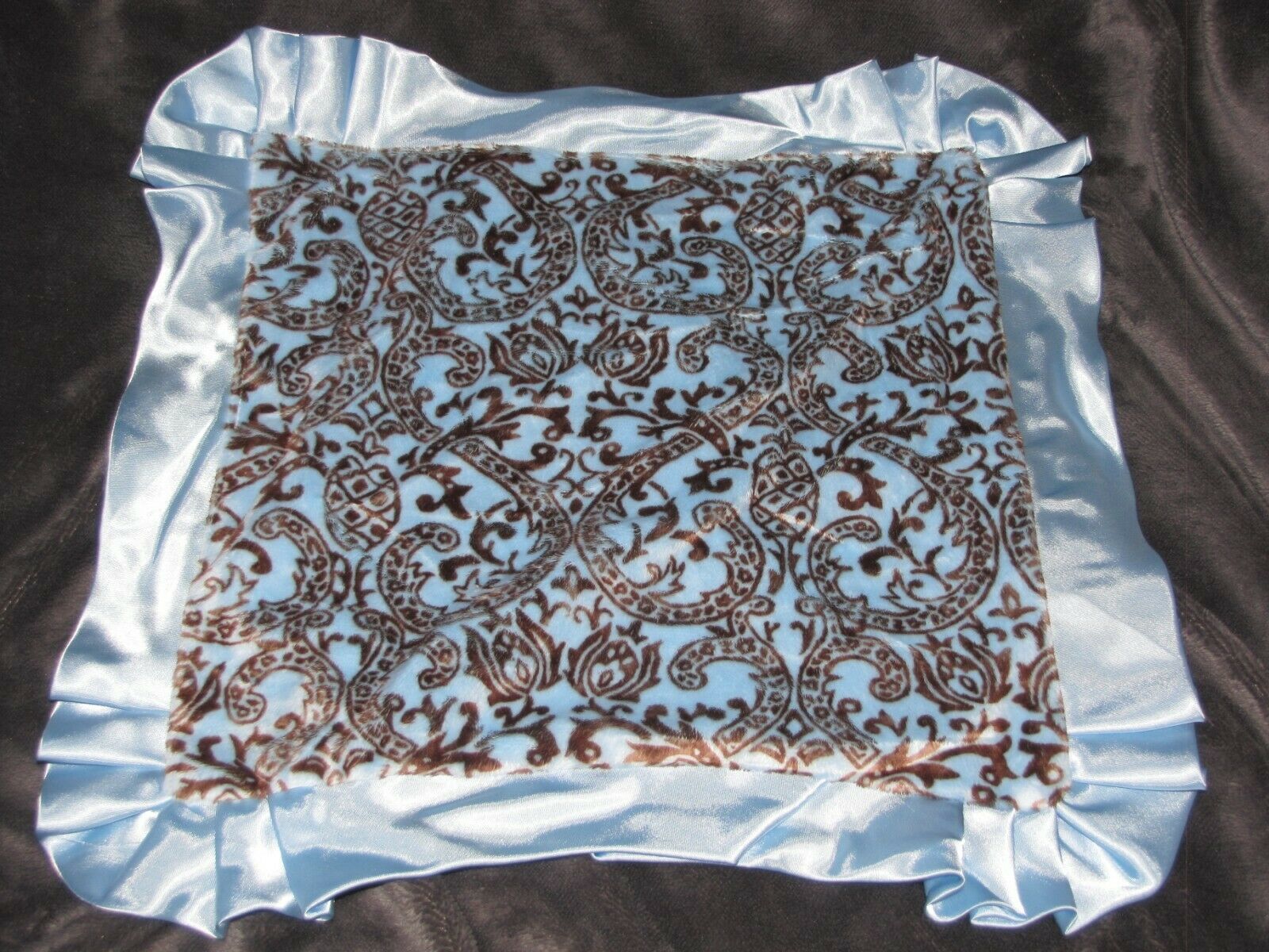 Baby Boy Security Blanket Mini Blue Brown Scroll Damask Ruffle Trim Edge