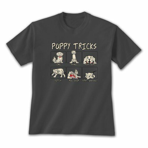 Puppy Tricks T-shirt S M L 2XL Dog Unisex New NWT Cotton Charcoal Gray Humor
