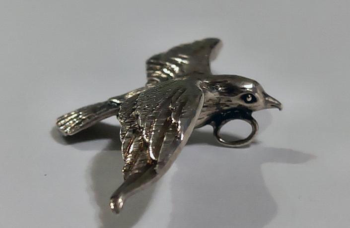 This is a vintage, silver, pendant. It looks like sterling but it is not marked. It's highly detailed and has a 2 1/2" wingspan.
