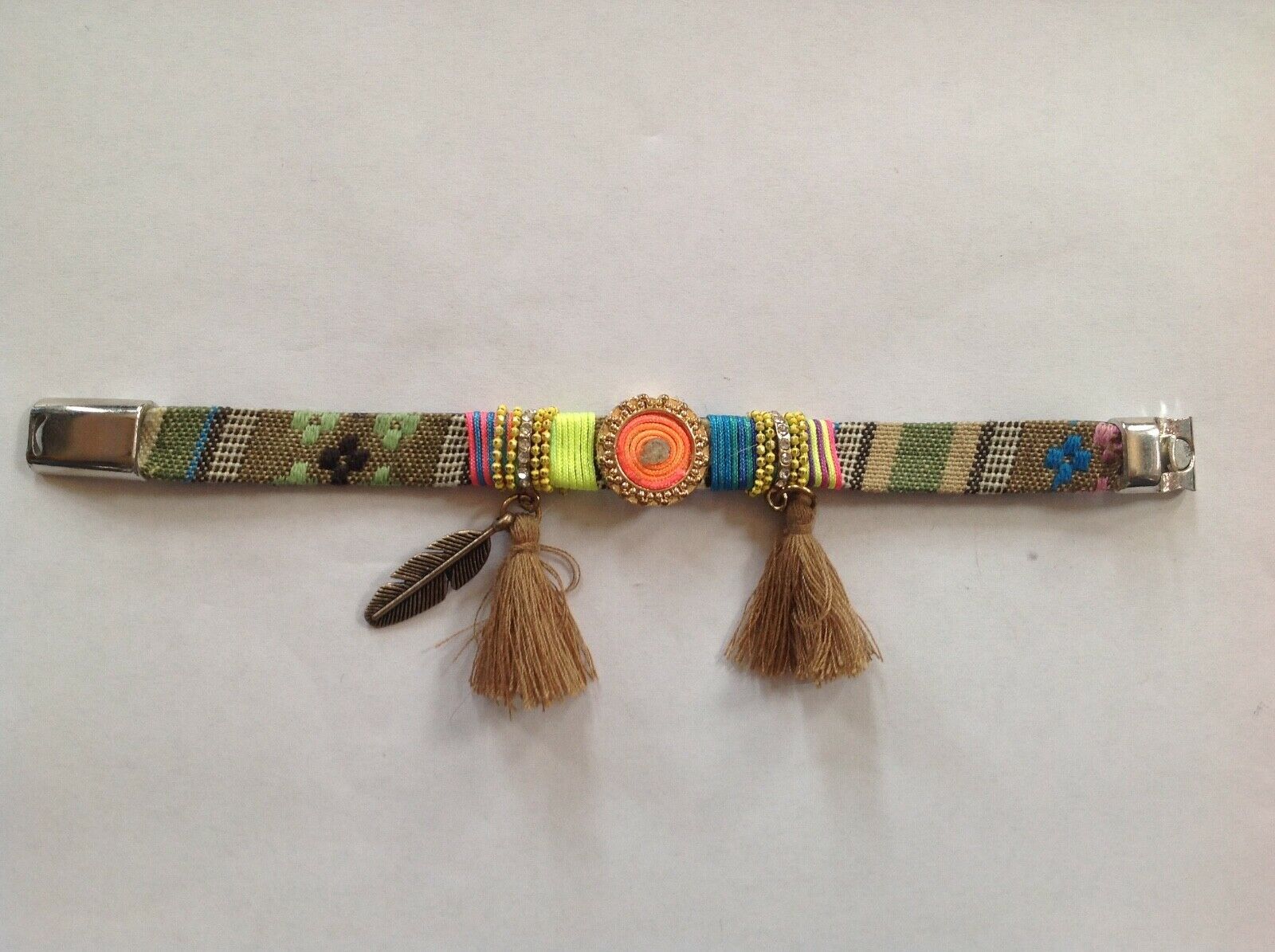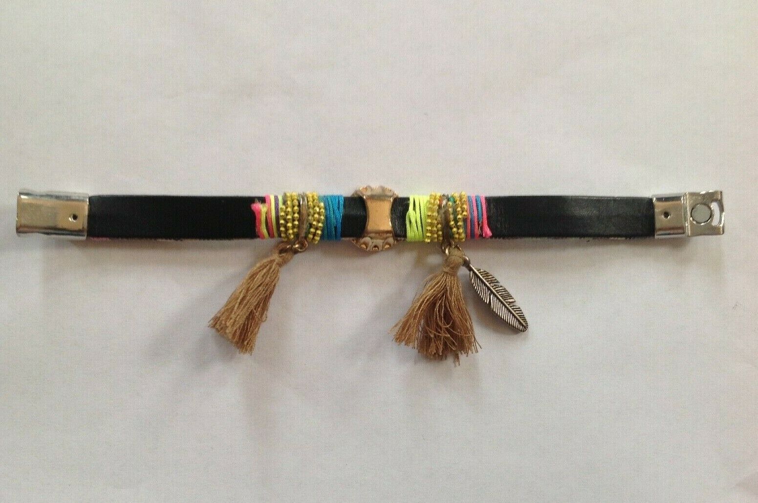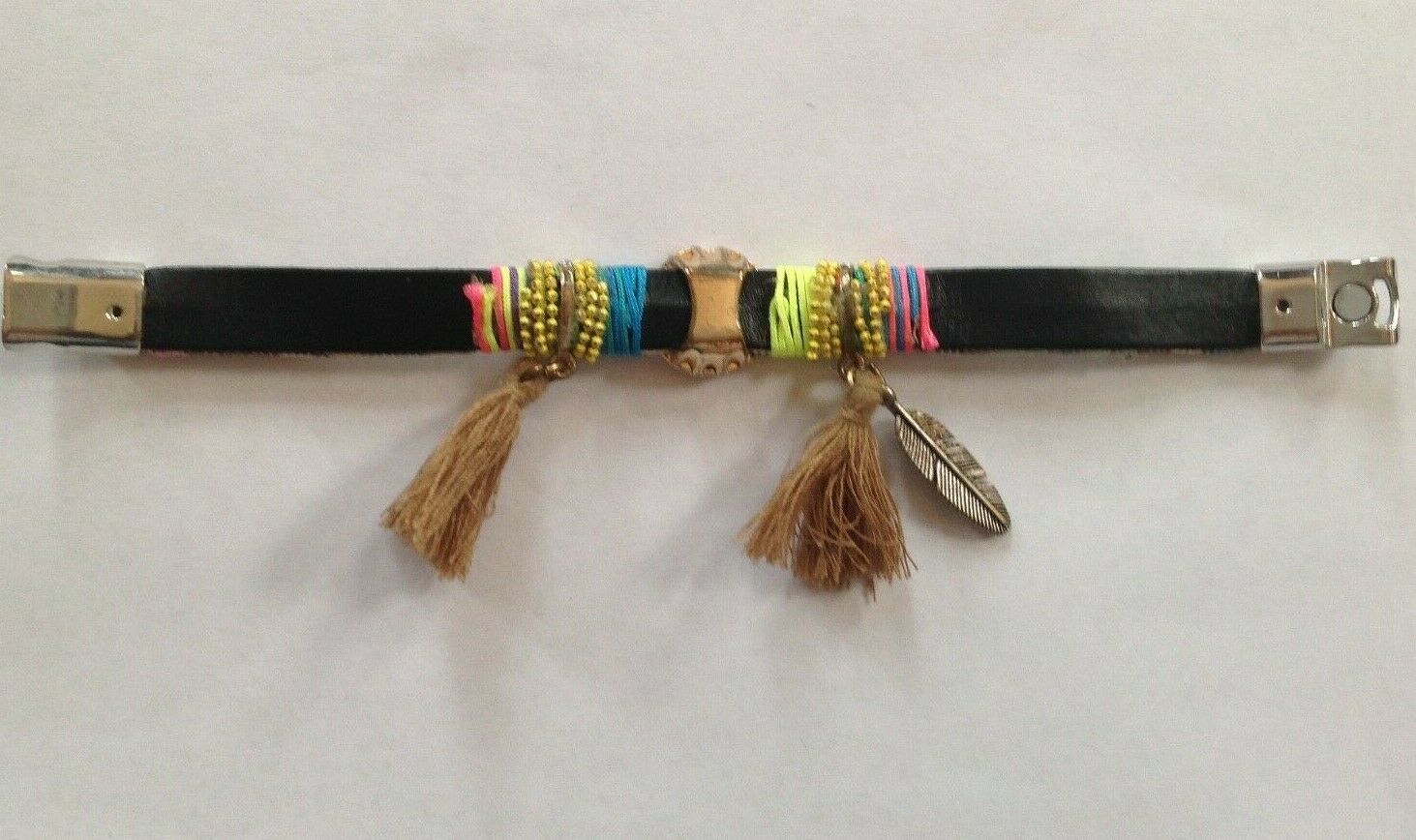 Multi Color Tribal Embellished Tassel Feathered Canvas Bracelet Size Small 7.5", pre owned never used , magnetic clasp. and will be shipped promptly