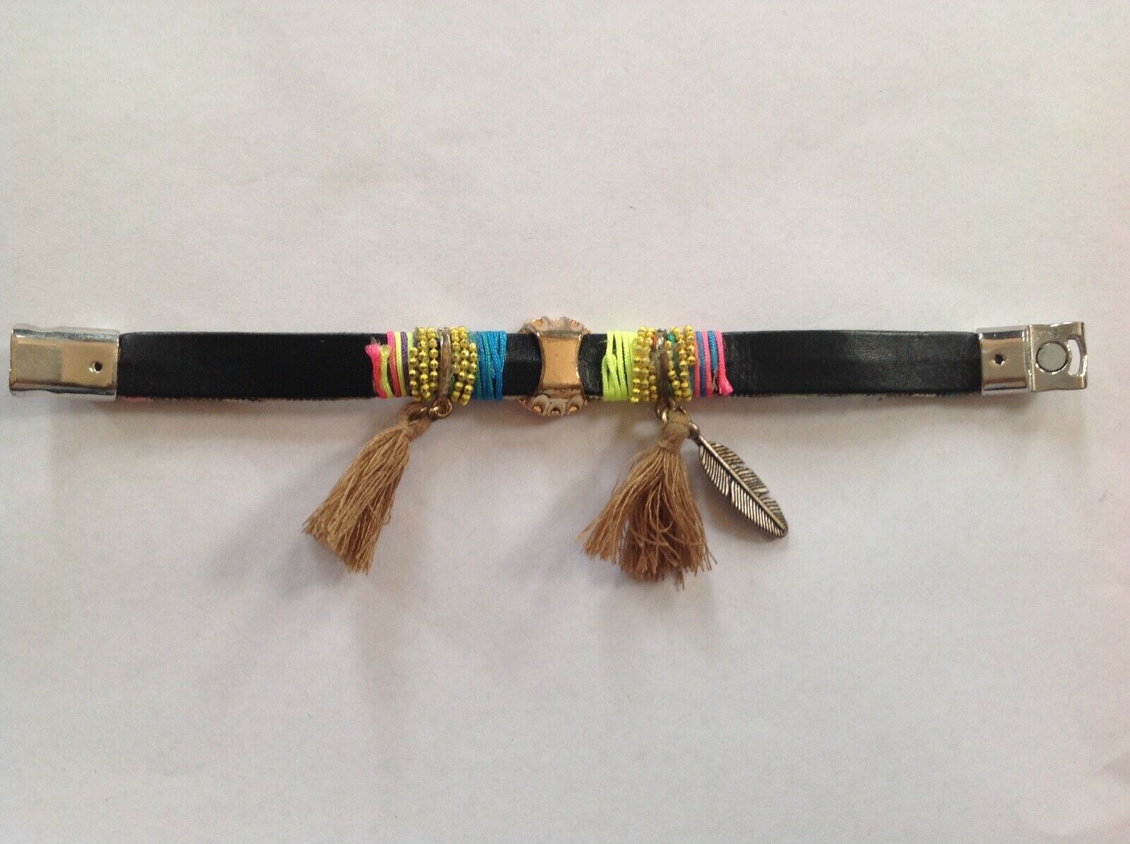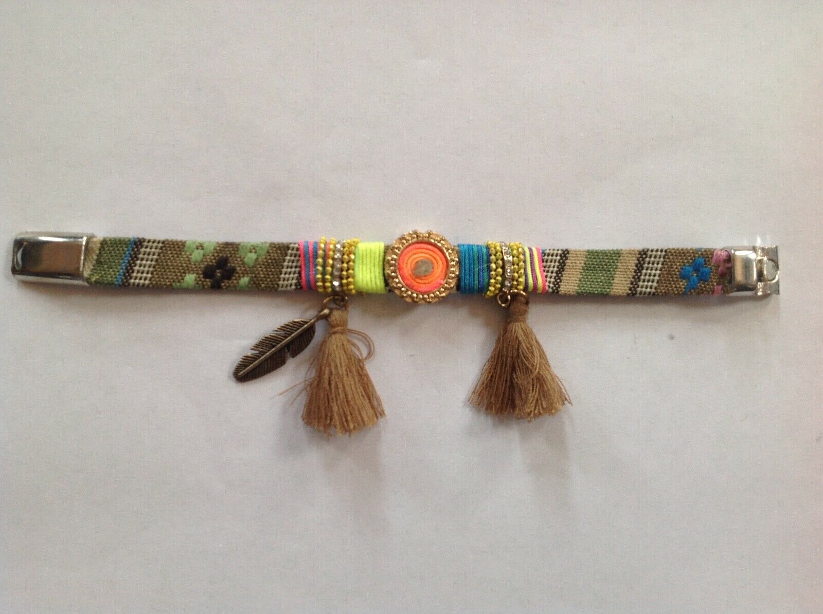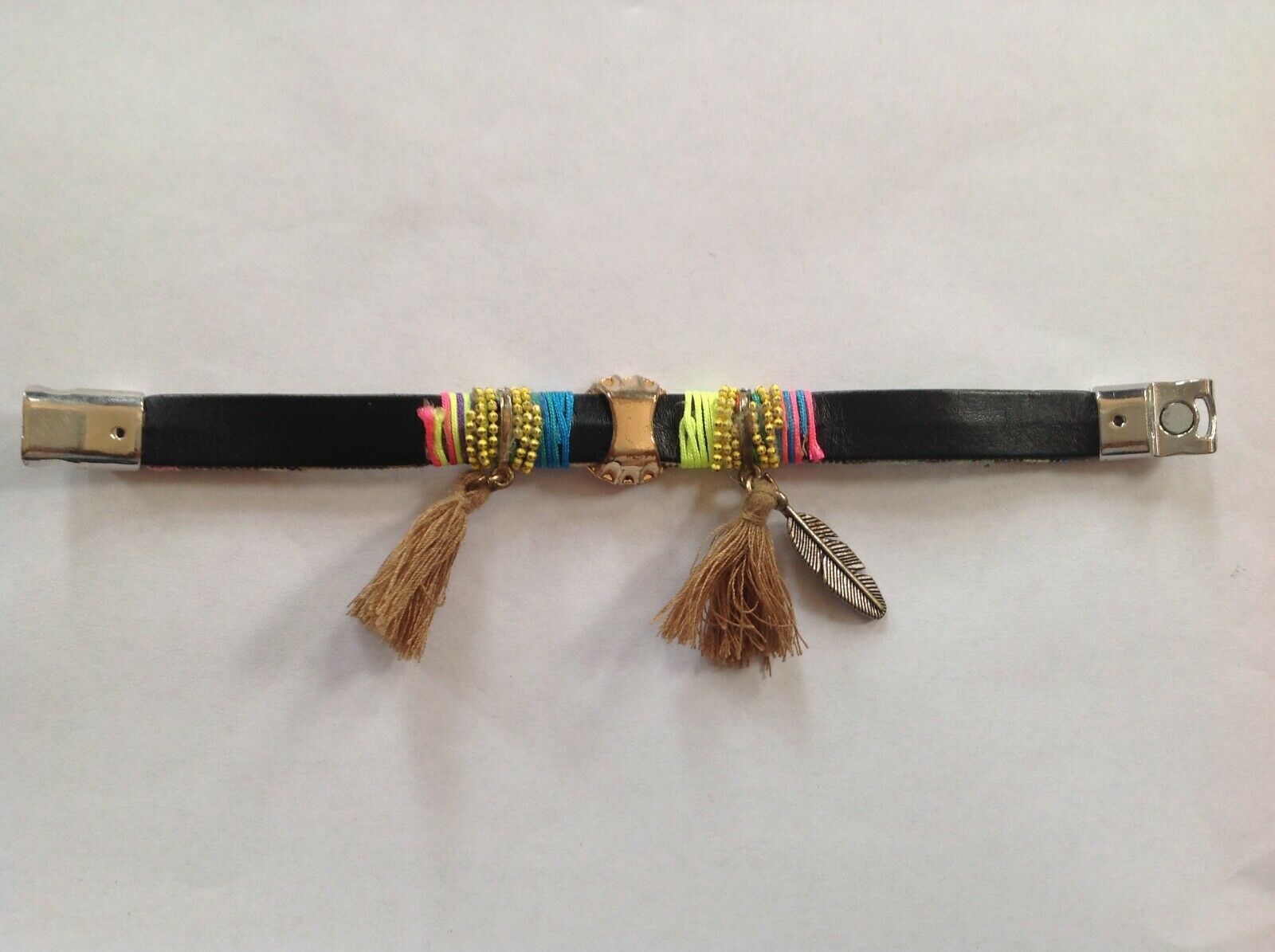 Multi Color Tribal Embellished Tassel Feathered Canvas Bracelet Size Small 7.5", pre owned never used , magnetic clasp. and will be shipped promptly