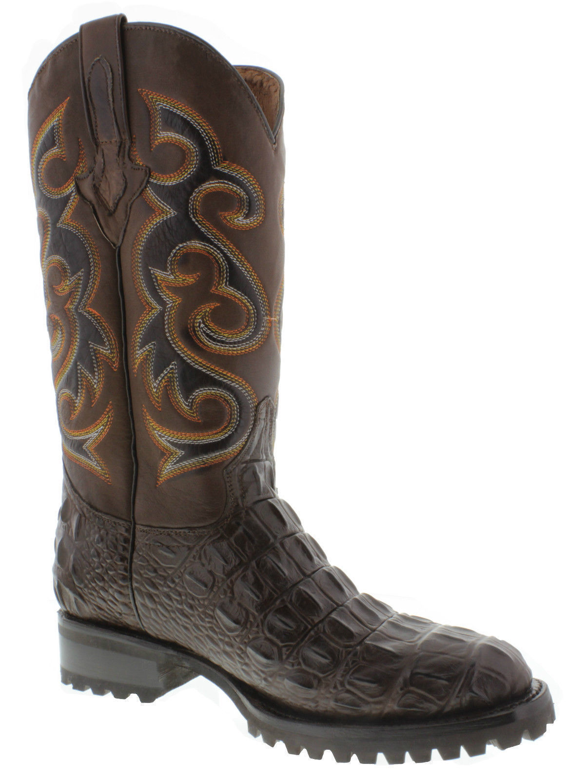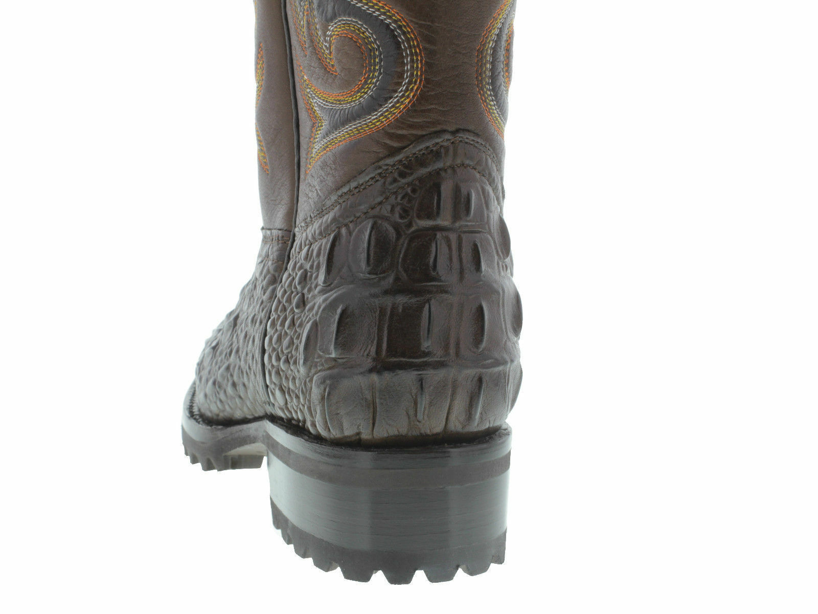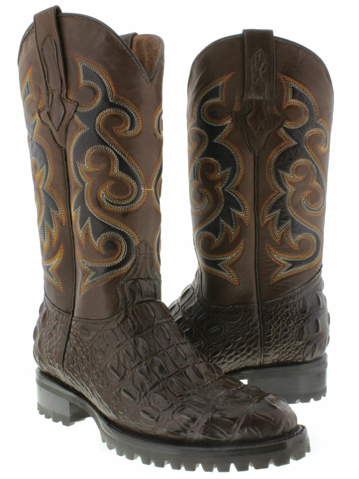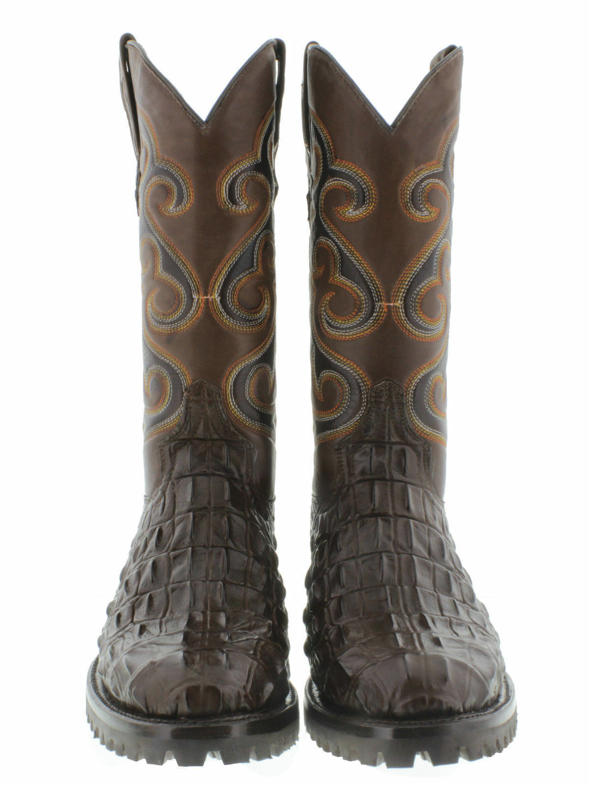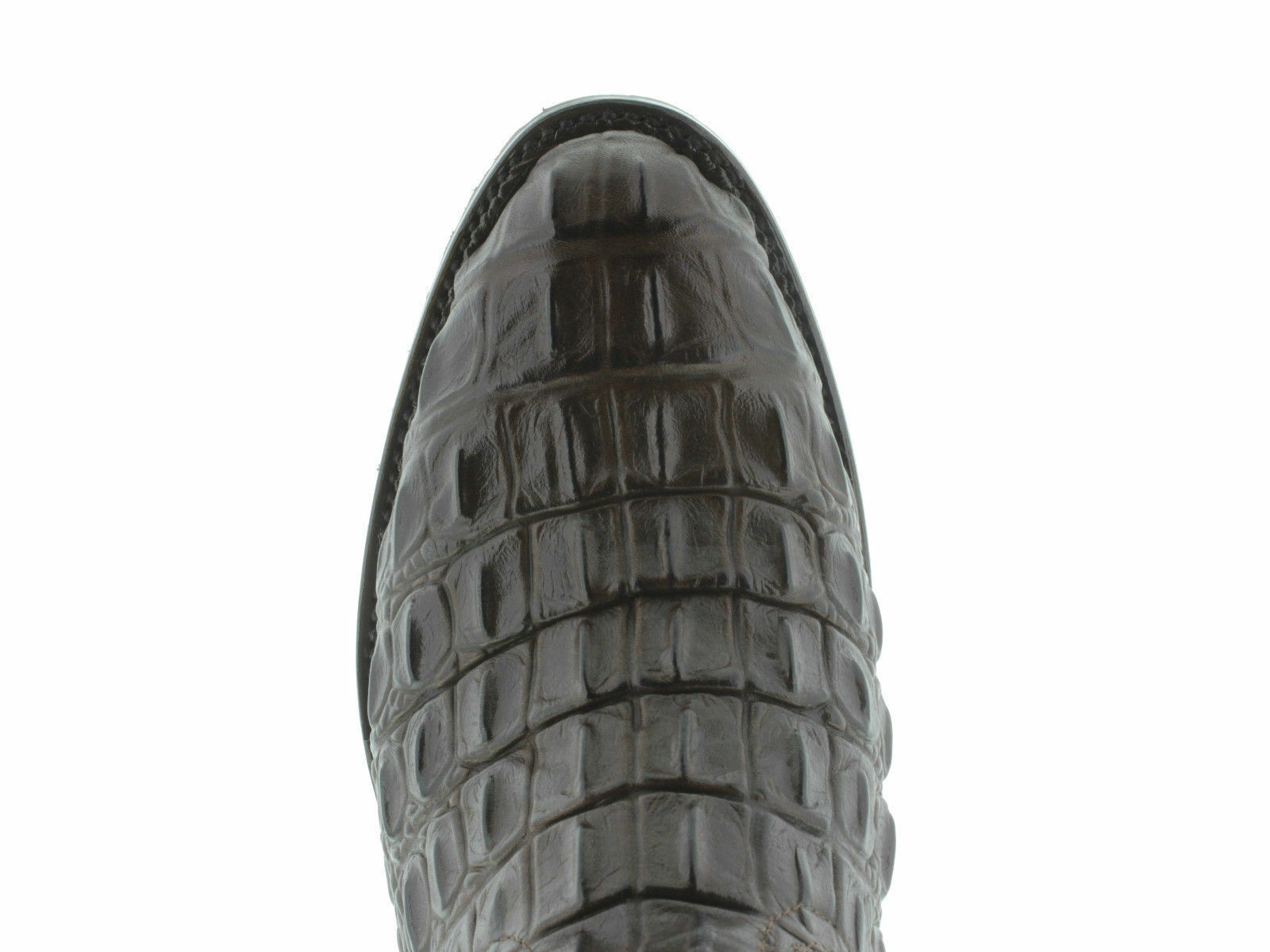 Mens Brown Biker Boots Crocodile Back Pattern Leather Cowboy Motorcycle Round