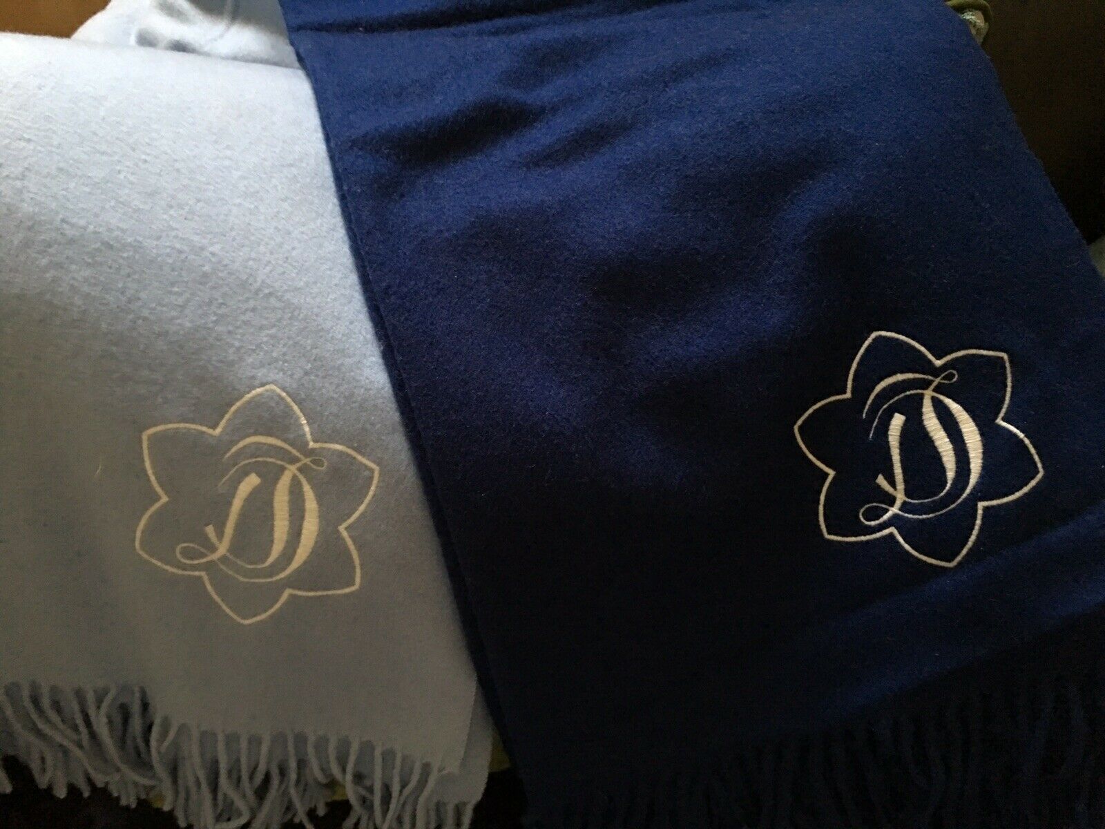 JAMES DRAPER NAVY OR LT BLUE FRINGE THROW BLANKET 90% WOOL/10% CASHMERE NEW