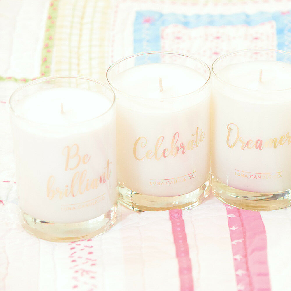 Made with the finest ingredients, Luna Candle Co. offers you a variety of your go-to fragrances. Our luxurious soy blend wax burns evenly leaving no residue on the glass to create the best quality burn possible.