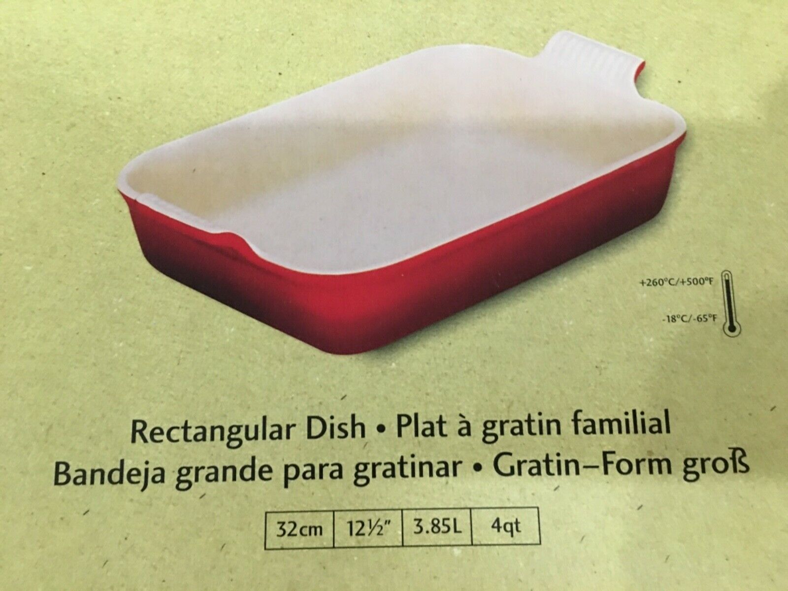 LE CREUSET 32CM 4qt DEEP BAKING DISH RECTANGULAR NWT BEAUTIFUL NICE HANDLES