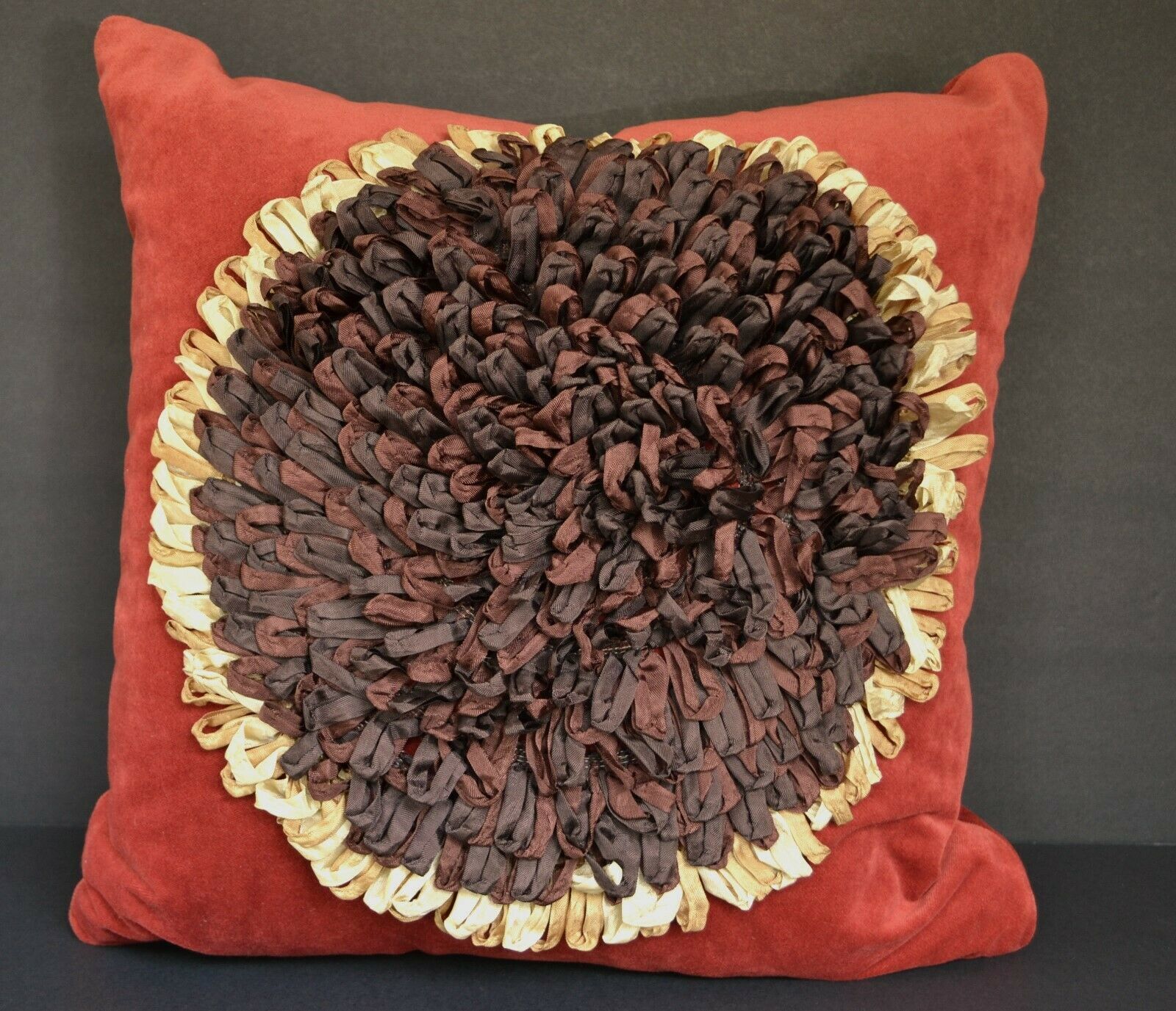 Daniel Stuart Studio Velvet Sunflower Pillow - Red, Brown, Camel