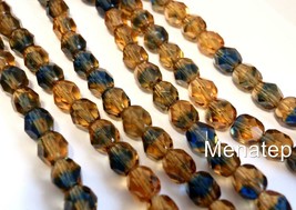 25 6 mm Czech Glass Firepolish Beads: Topaz/Montana Blue