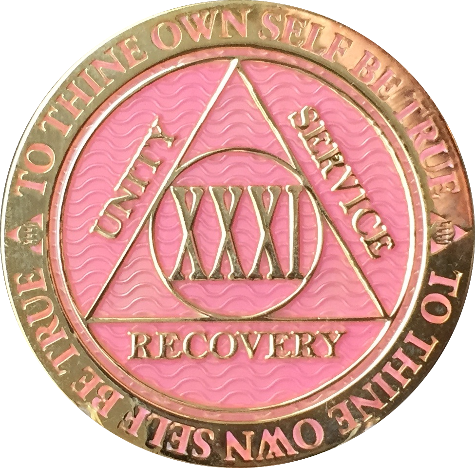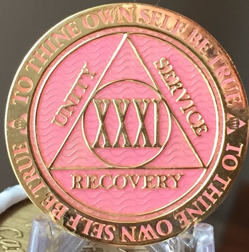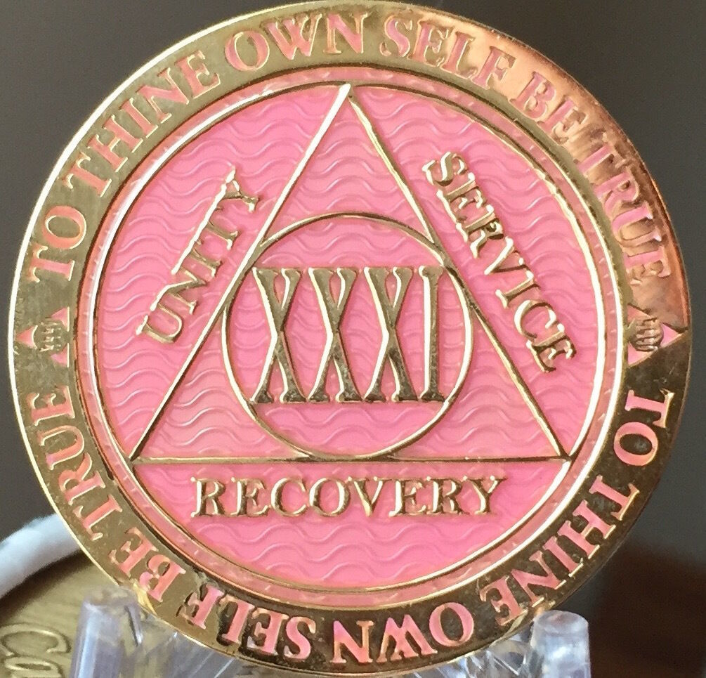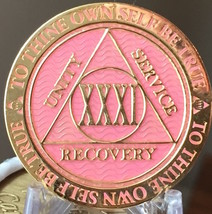 31 Year AA Medallion Pink Gold Plated Alcoholics Anonymous Sobriety Chip Coin