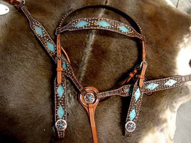 Horse Show Tack Bridle Western Leather Headstall Breast Collar Turq 80163CO59HBB