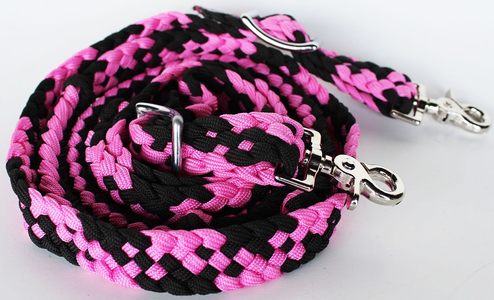 Horse Roping Western Barrel Reins Nylon Braided Pink Black Tack Rein 8ft 607127