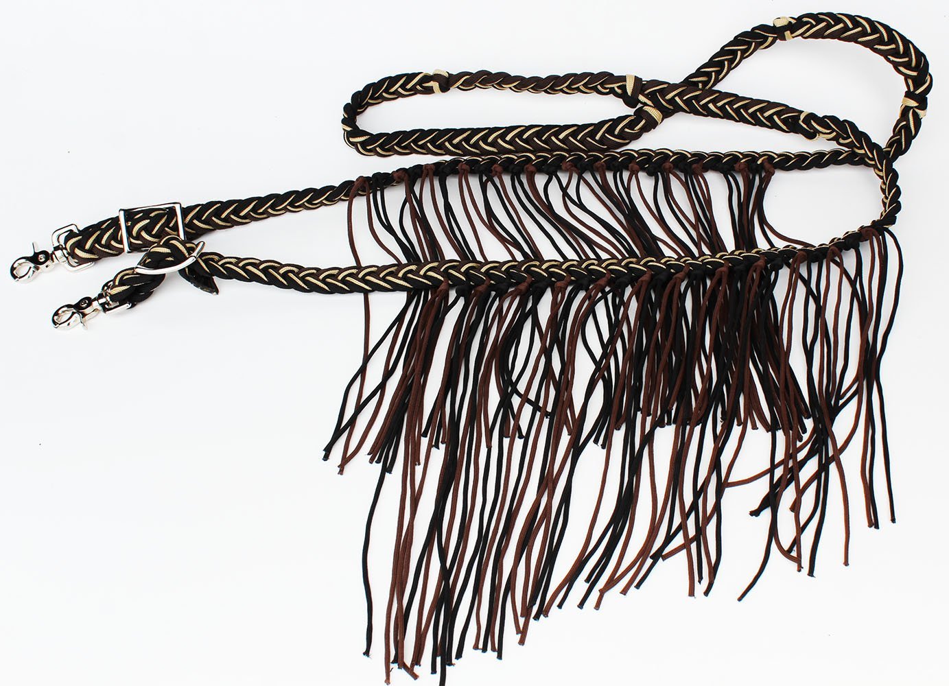 Horse Roping Knotted Tack Western Barrel Reins Nylon Braided Fringe Brown 607227