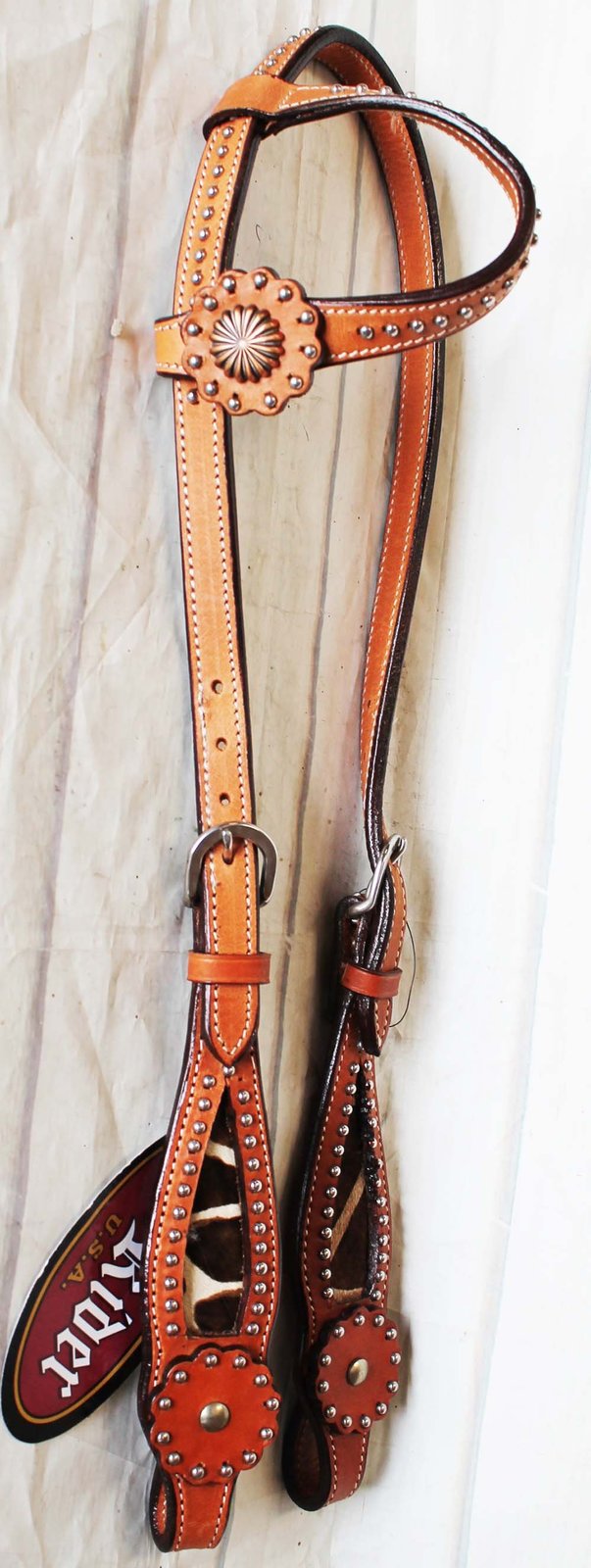 Horse Show Saddle Tack Rodeo Bridle Western Leather Headstall Hairon 7801HA