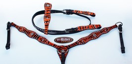 Horse Show Tack Bridle Western Leather Headstall Breast Collar Orange 8908