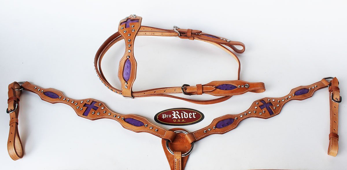 Horse Show Tack Bridle Western Leather Headstall Breast Collar 8371B