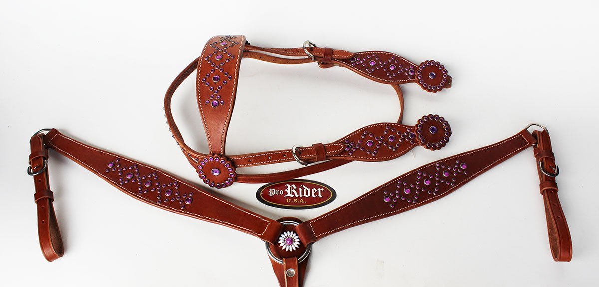 Horse Show Tack Bridle Western Leather Headstall Breast Collar Purple 8361
