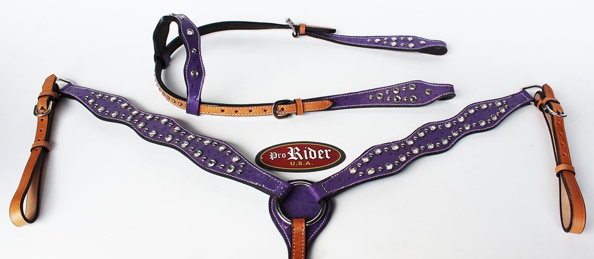 Horse Show Tack Bridle Western Leather Headstall Breast Collar 8373A