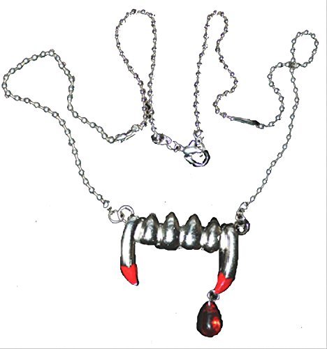 Product description: Large Bite Me True VAMPIRE FANGS with FAUX BLOOD DROP PENDANT NECKLACE T
