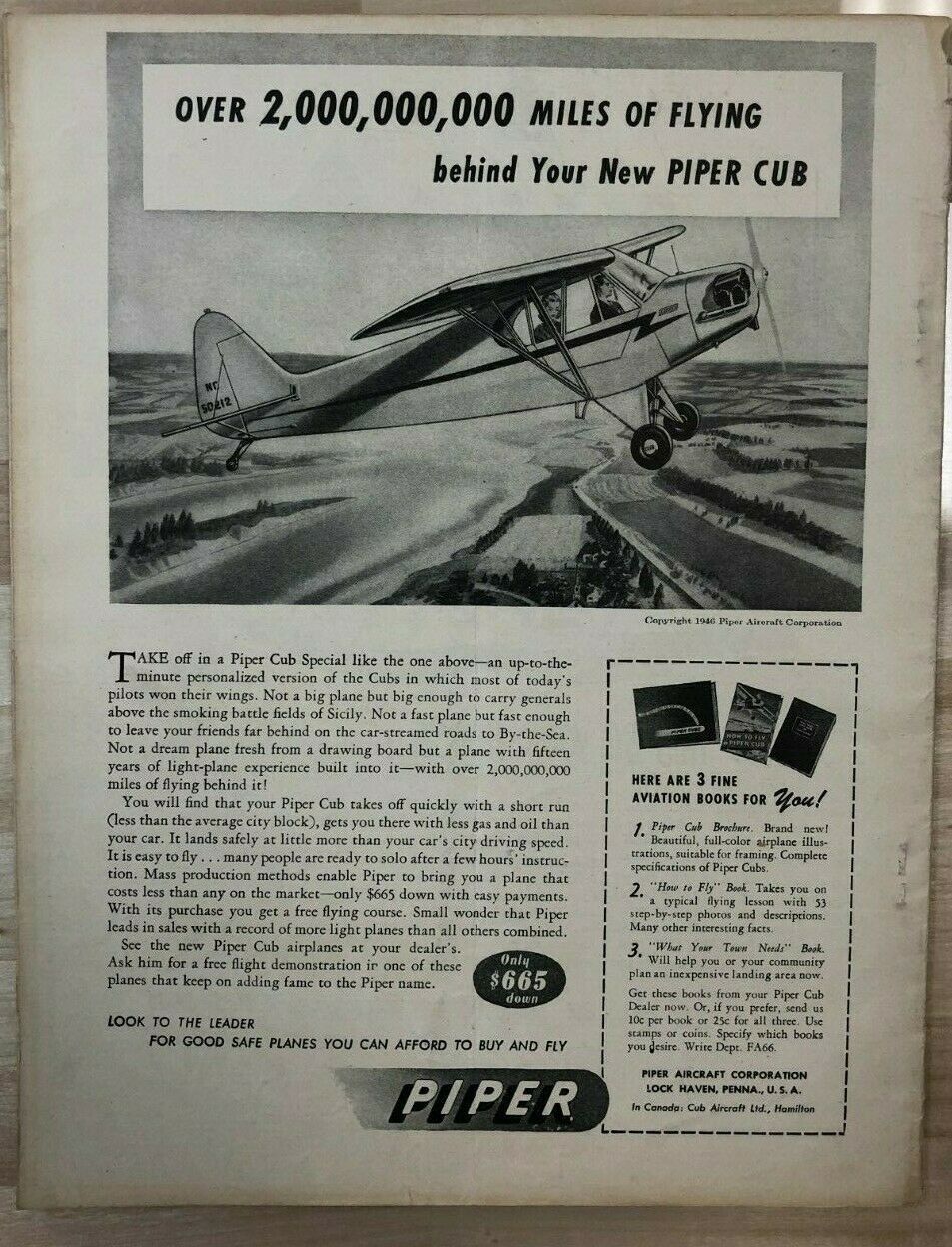 FLYING AGE magazine June 1946 Piper Aircraft back cover ad (Lock Haven PA)