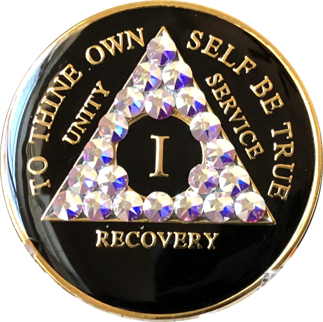 1 - 50 Year AA Medallion Amethyst Swarovski Crystal Black Sobriety Chip