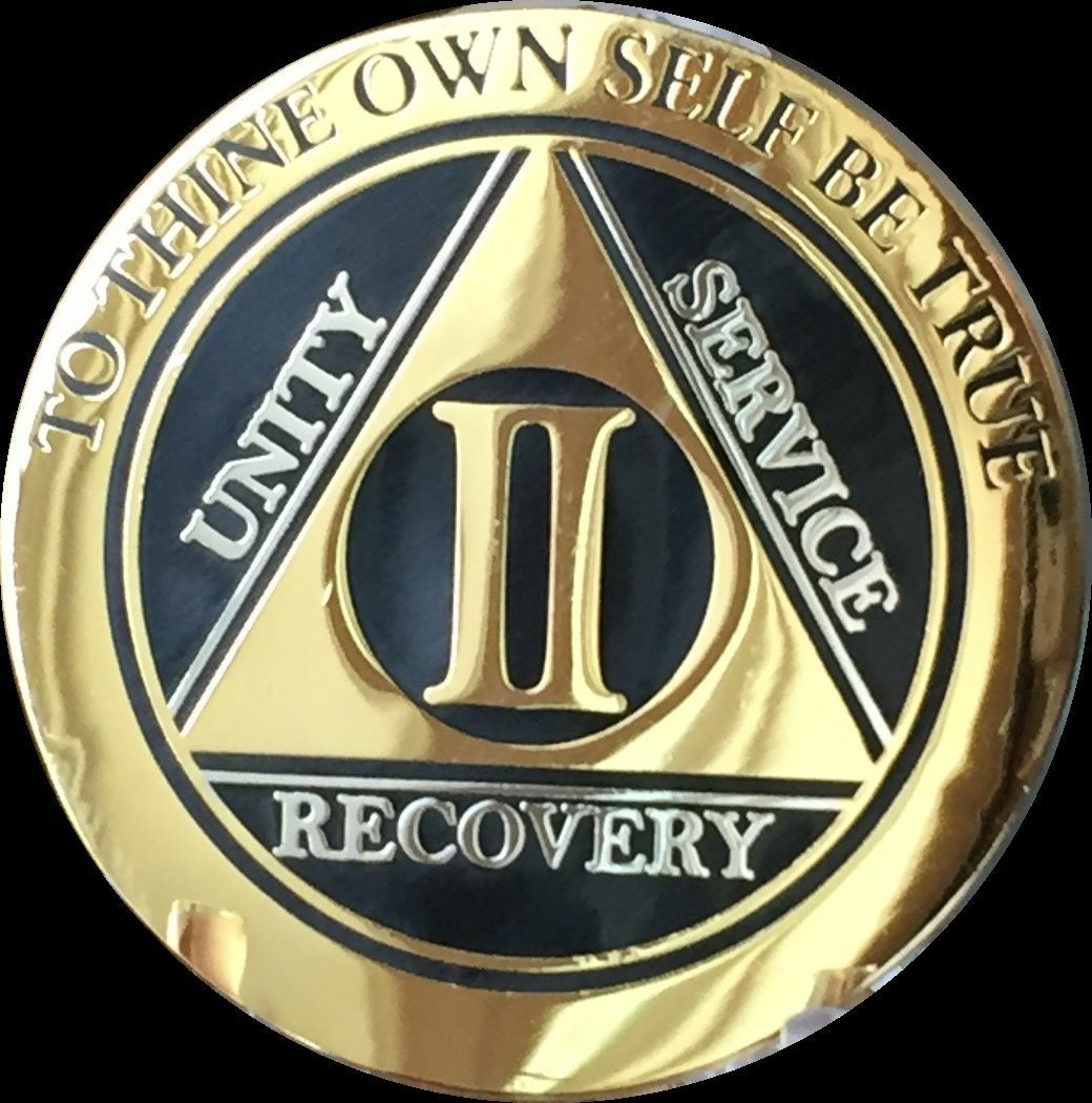 2 Year AA Medallion Black Gold Plated Bi-Plate Alcoholics Anonymous Chip Coin