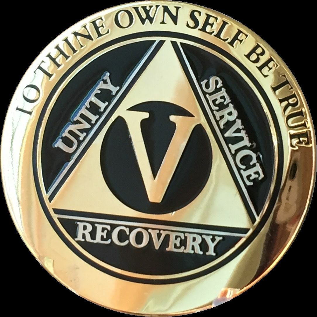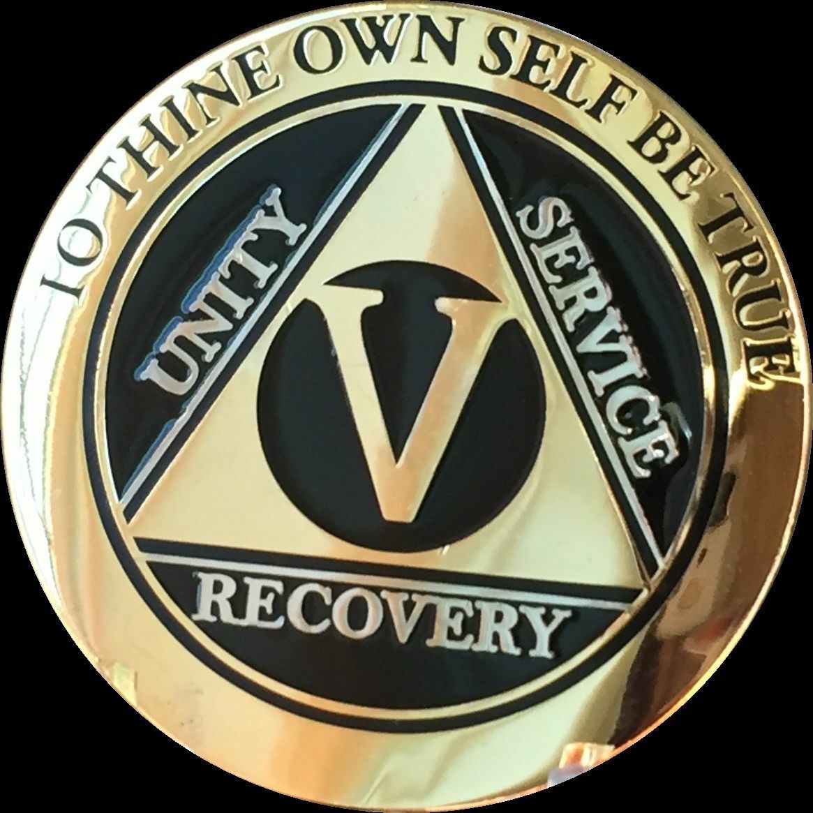 5 Year AA Medallion Black Gold Plated Bi-Plate Alcoholics Anonymous Chip Coin