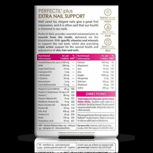 Perfectil Plus Nails provides your skin, hair and nails with a comprehensive spectrum of the essential bio-active nutrients. As well as benefiting these areas, Perfectil Plus Nails also safeguards your diet by doubling up as a complete multivitamin for all round health. There is no need to take an additional multivitamin.