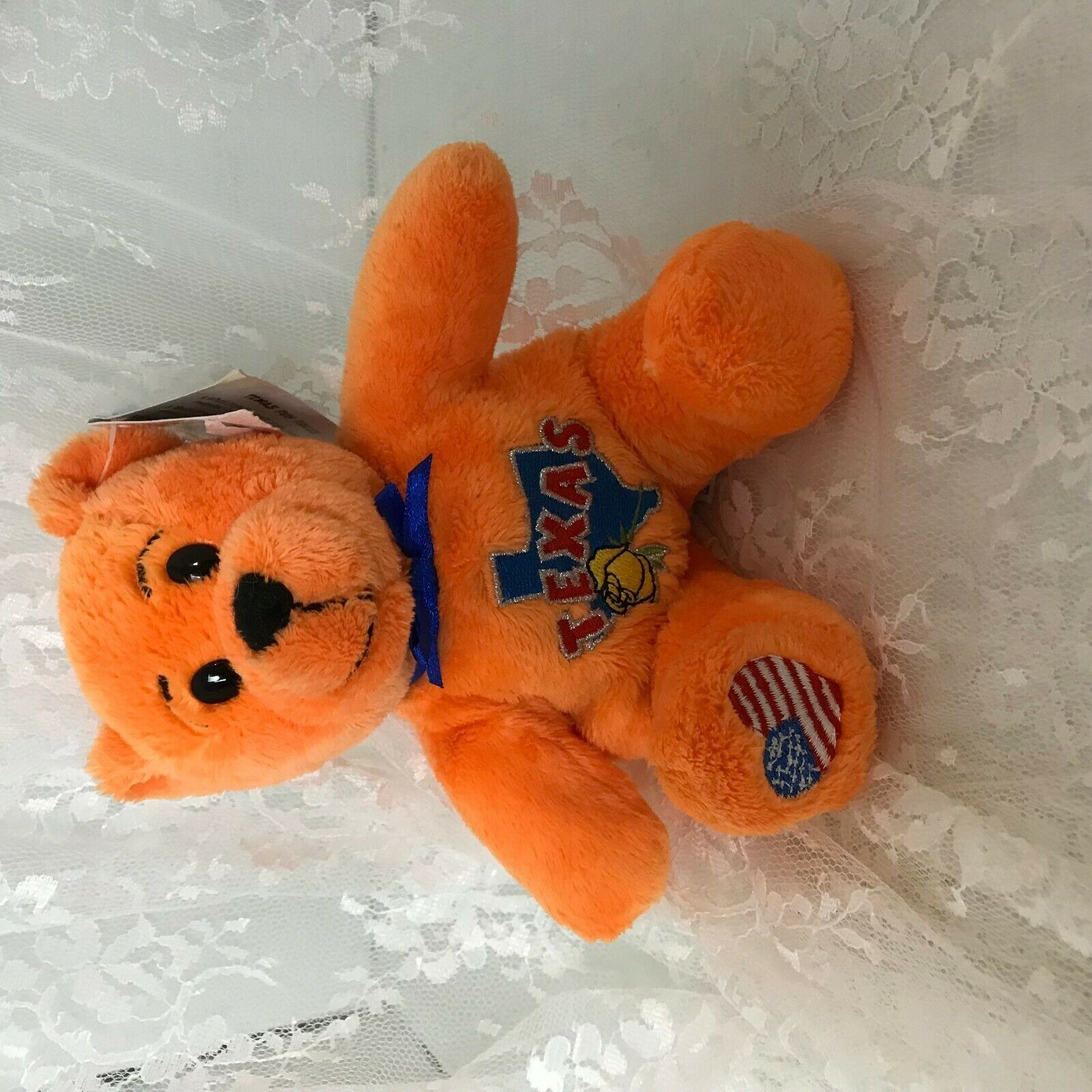 2006 Texas State Bear - Symbolz Bean Bag Bottom Bear - Texas Yellow Rose Teddy Bear - 8" - Orange Plush Toy! Excellent Condition - See photos for further description.