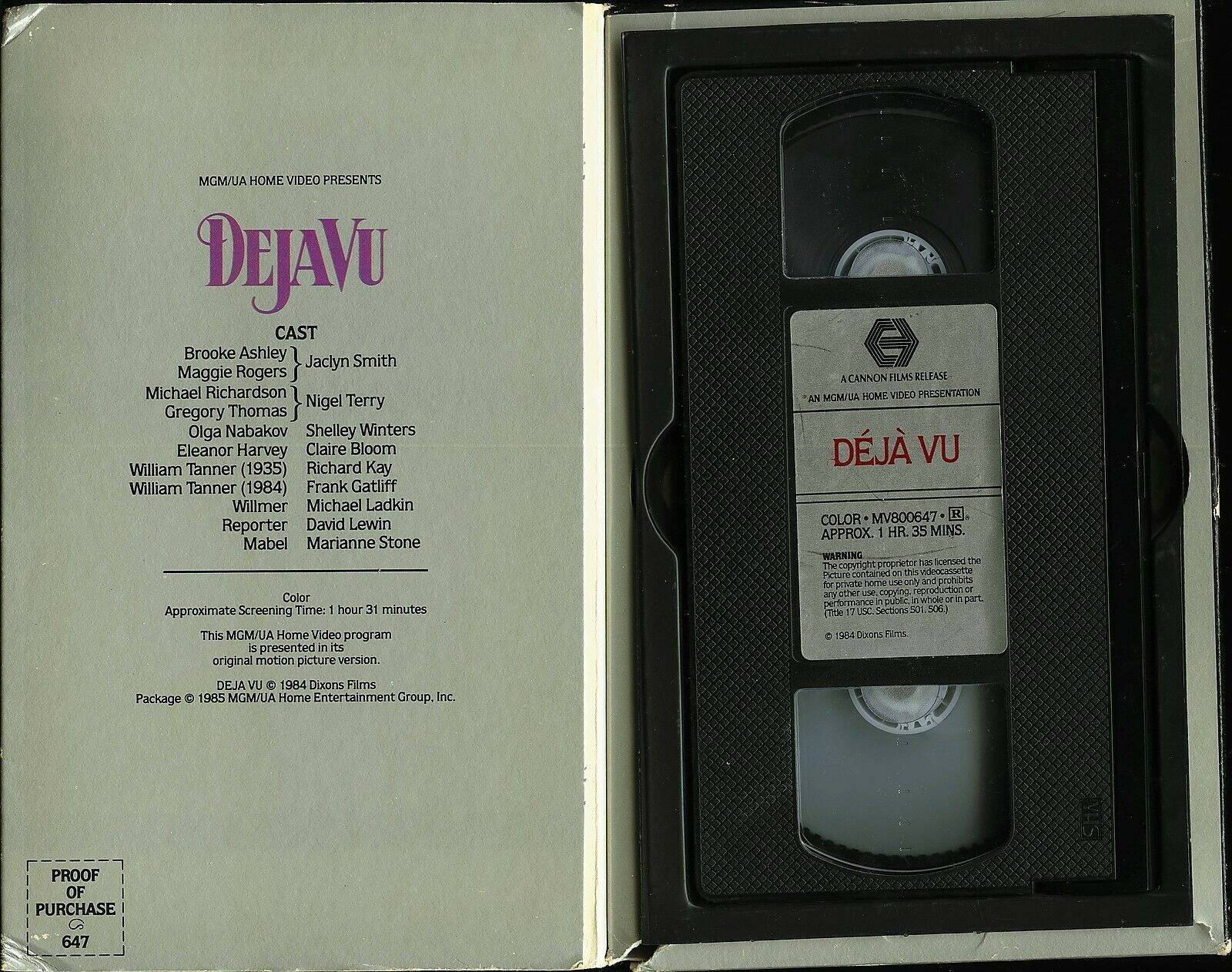 DEJA VU JACLYN SMITH SHELLEY WINTERS VHS MGM VIDEO LARGE BOX TESTED
