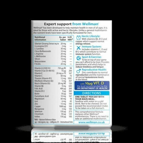 Wellman is different from a regular multivitamin as its formula has been optimised for men's health on the basis of international research evidence, so some nutrients are provided at levels above the Nutrient Reference Value. While Wellman provides a core source of all the major vitamins and minerals, it also provides more than 100% of certain nutrients, plus Siberian Ginseng, Co-enzyme Q10 and amino acids.