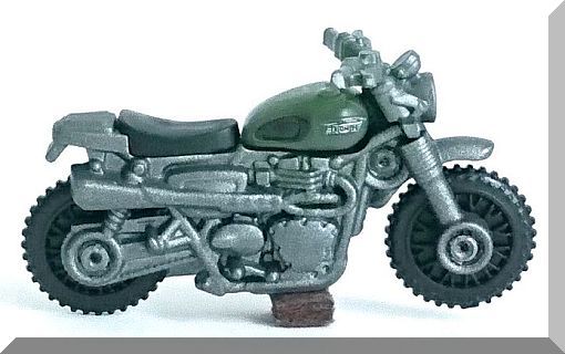 Description: Gray, w/No interior, No windows, Green gas tank w/’Triumph’ on sides, Black seat, Gray Thailand base, w/BlkMC’s. 092819-092819P-D08
