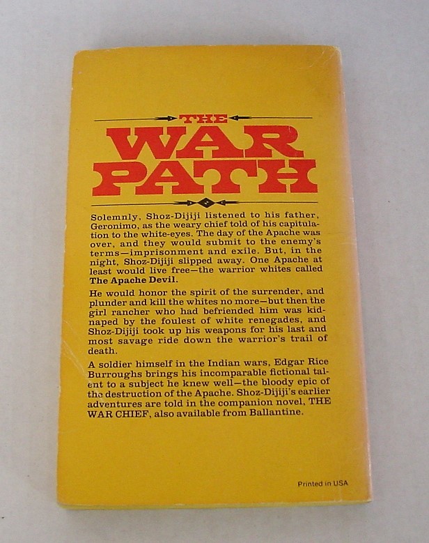 By Edgar Rice Burroughs. Cover art by The Brothers Hildebrandt. Ballantine 24605. As stated Third printing, December 1975. Tight, clean copy in near fine condition. Appears unread. Pages clean. Minor cover wear (please see pictures). "A soldier himself in the Indian wars, Edgar Rice Burroughs brings his incomparable fictional talent to a subject he knew well-the bloody epic of the destruction of the Apache."