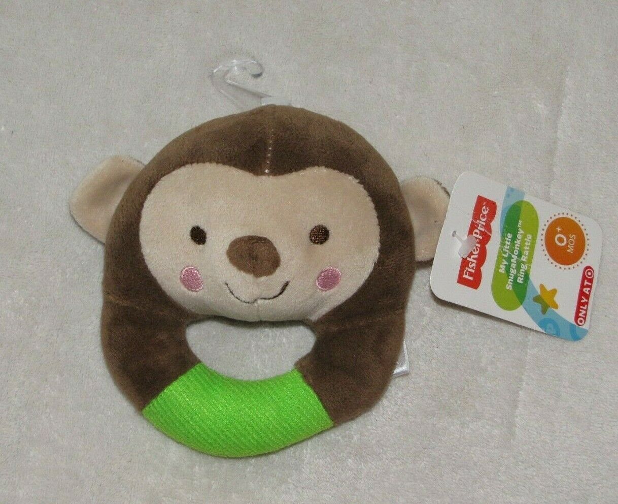 Fisher Price My Little Snugamonkey Stuffed Plush Circle Ring Rattle Green Monkey