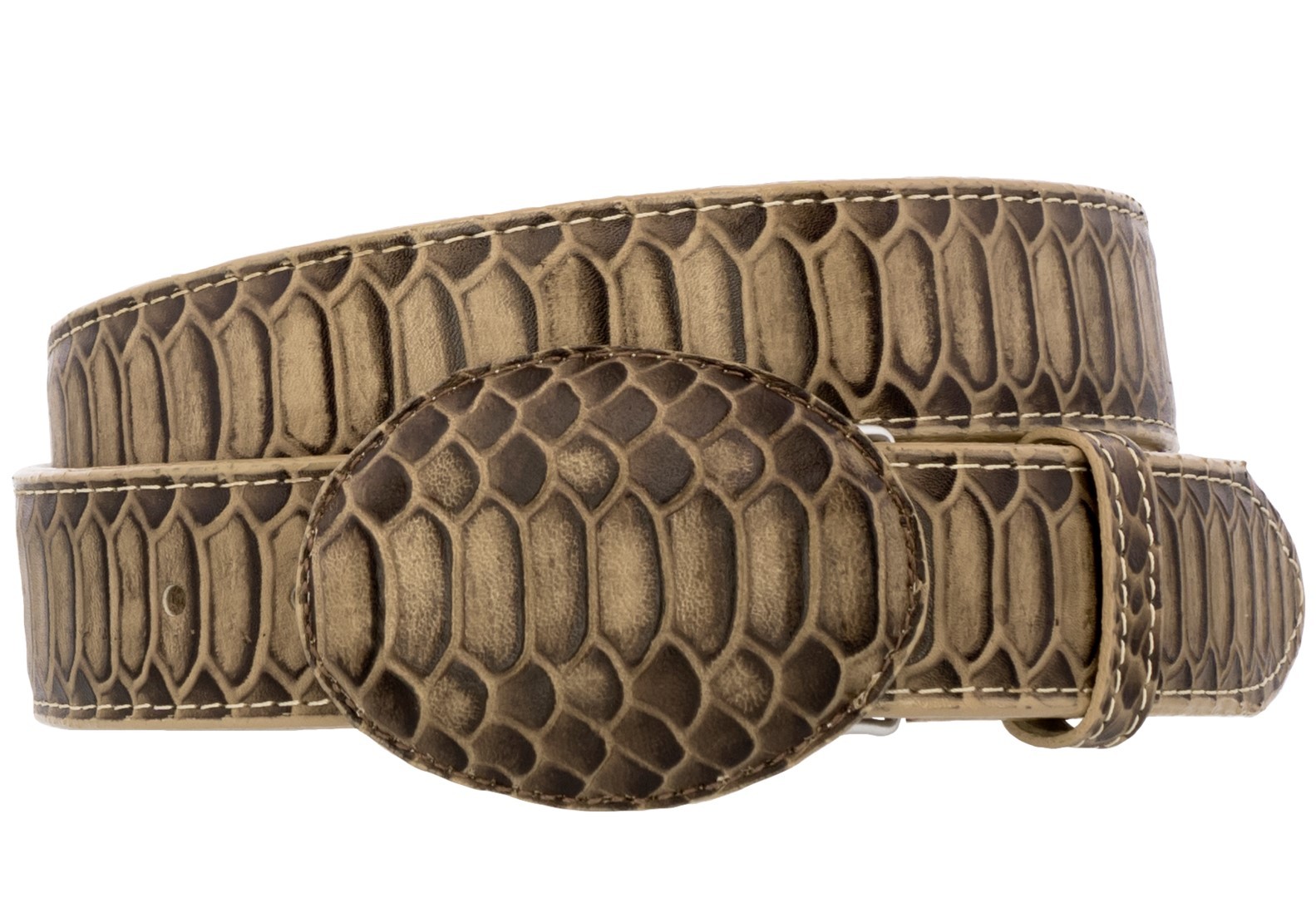Western Cowboy Belt Rustic Sand Snake Pattern Leather Removable Rodeo Buckle