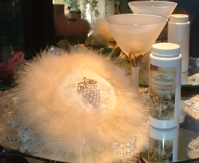 Renditions 6 oz / 180g Dusting Powder with Puff and Glass Stand