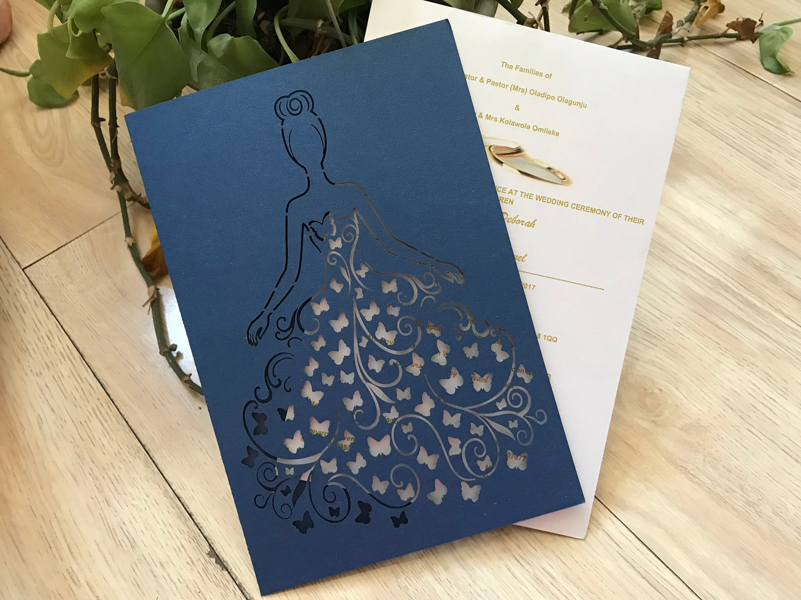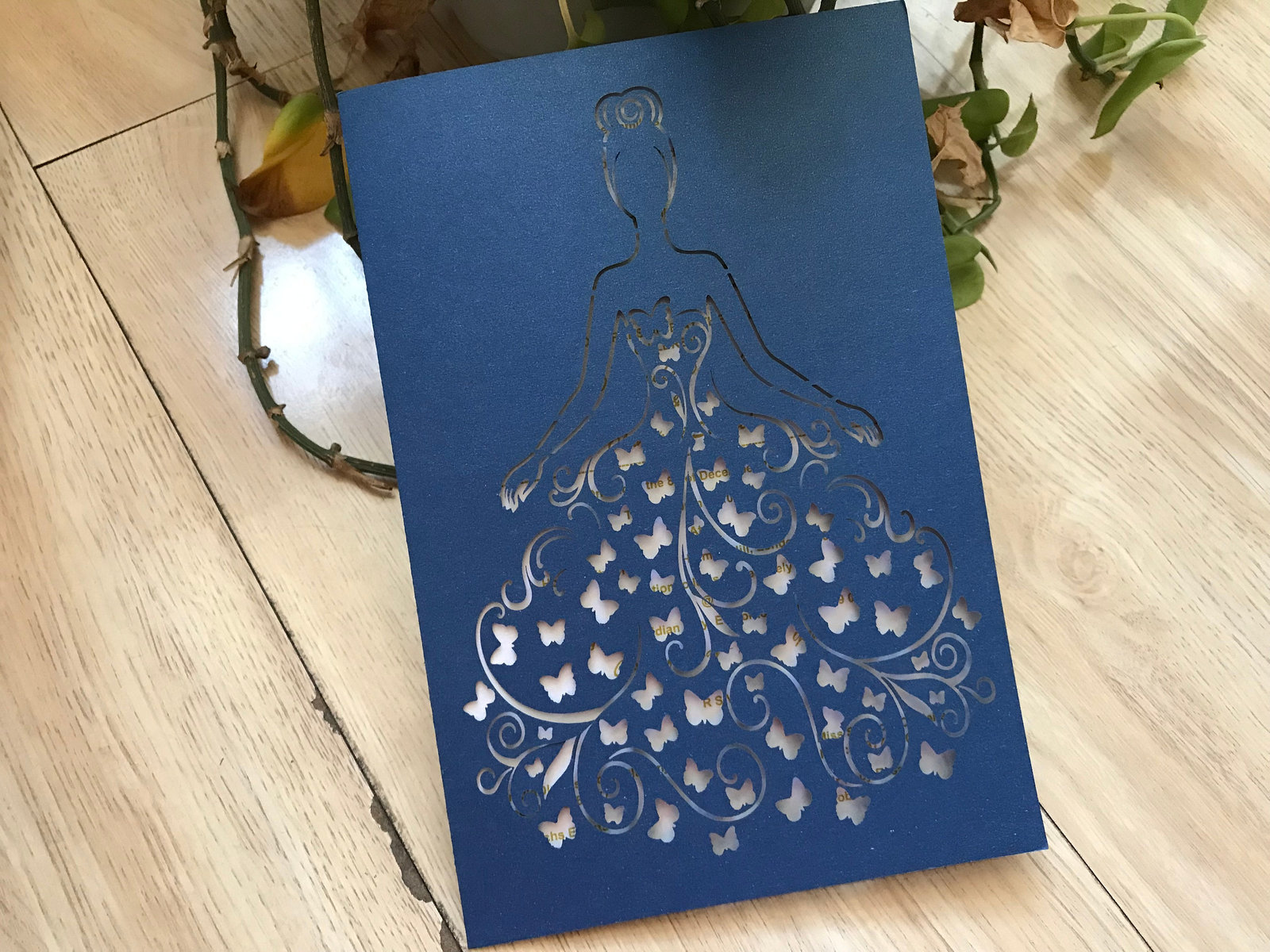50pcs Navy Blue wedding invitation,Bridal Shower laser cut invitations,Invite