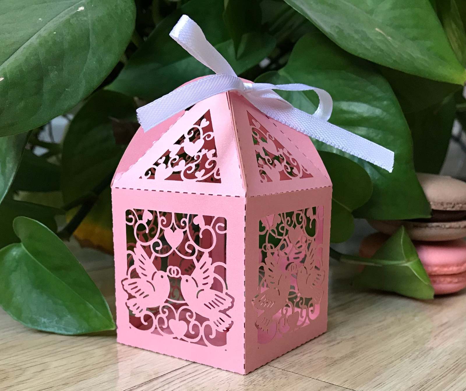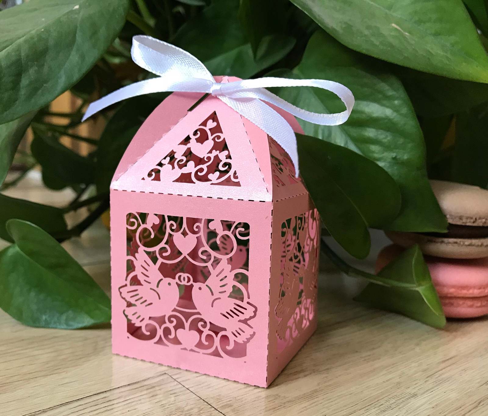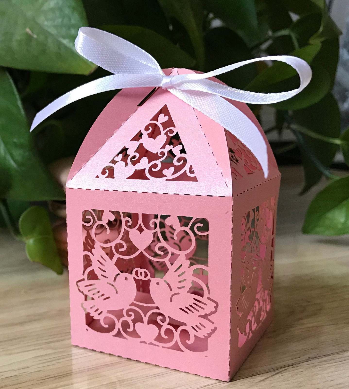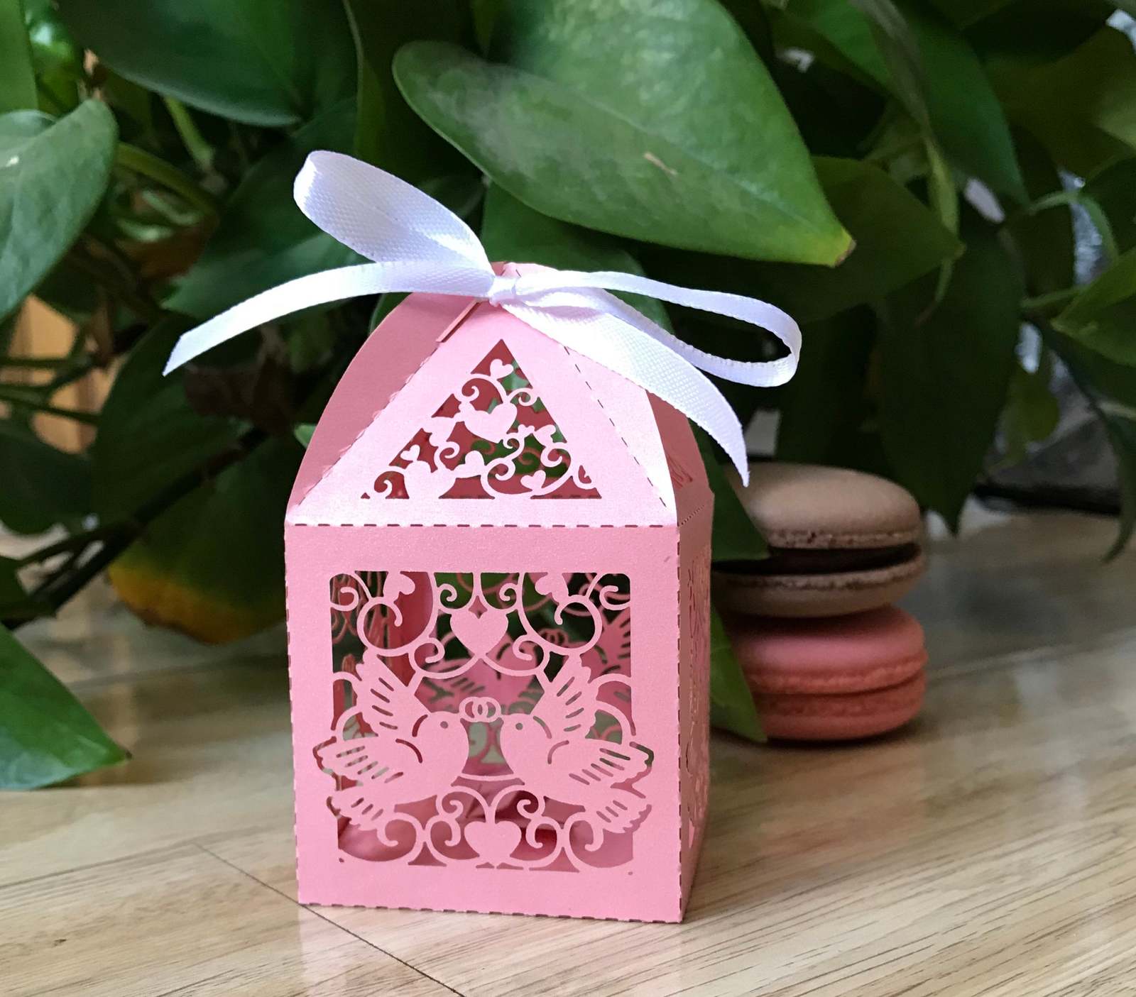 100pcs Pink Laser Cut Wedding Favor boxes,Gift Packaging box,wedding gift boxes,Chocolate gift wrapping,Wedding Favors,Cake Packaging Boxes