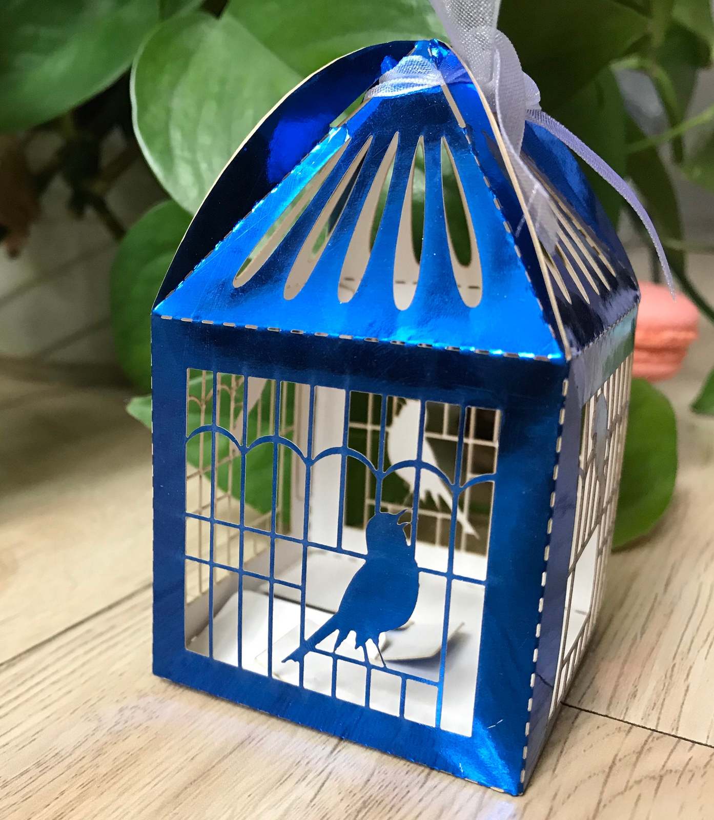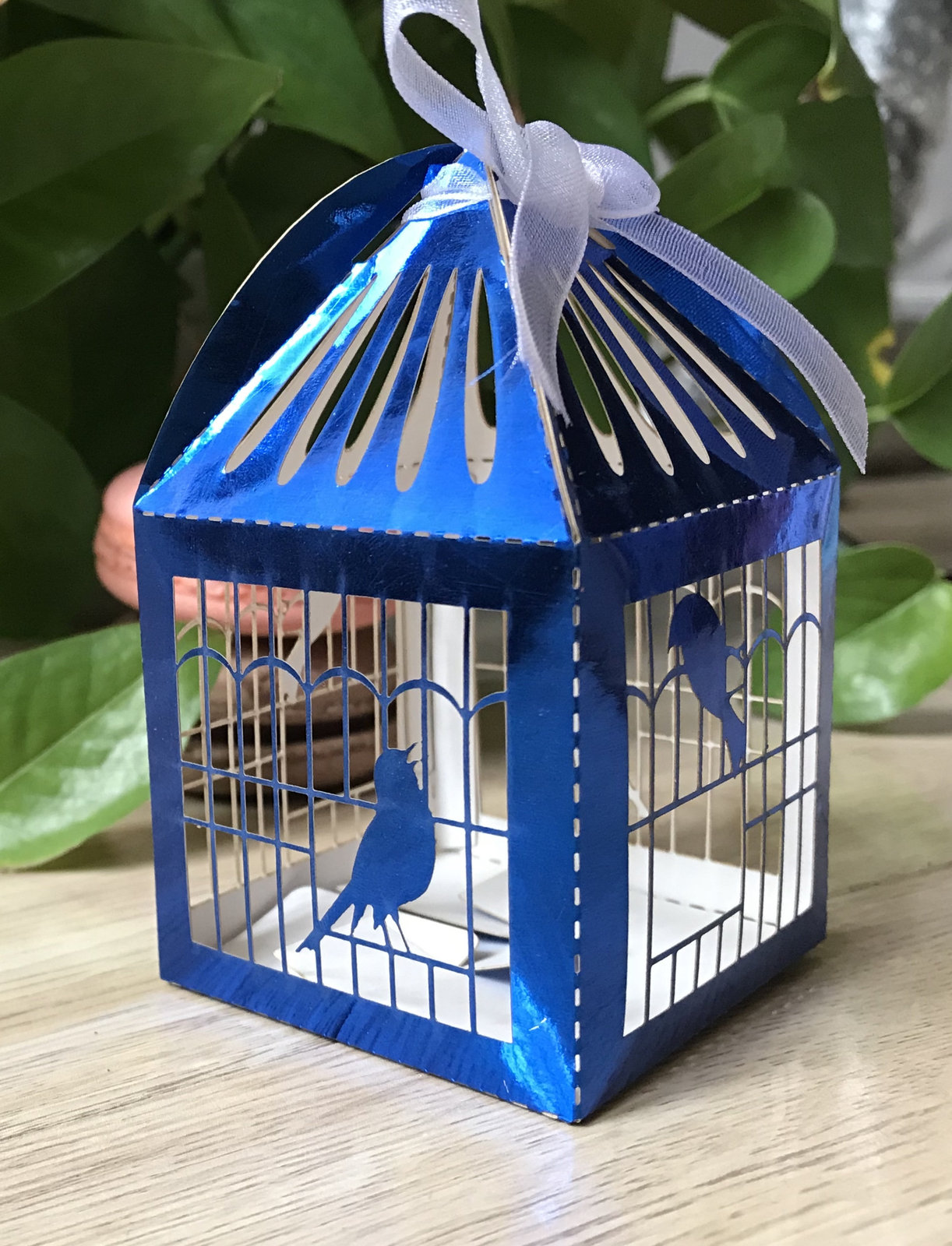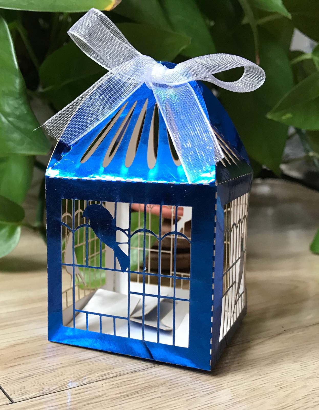 100pcs 6*6*9.5cm Metallic Navy Blue Laser Cut Wedding Favor Box with Ribbon,Chocolate Gift Packaging Boxes,Wedding Favors,Wedding Gift Boxes