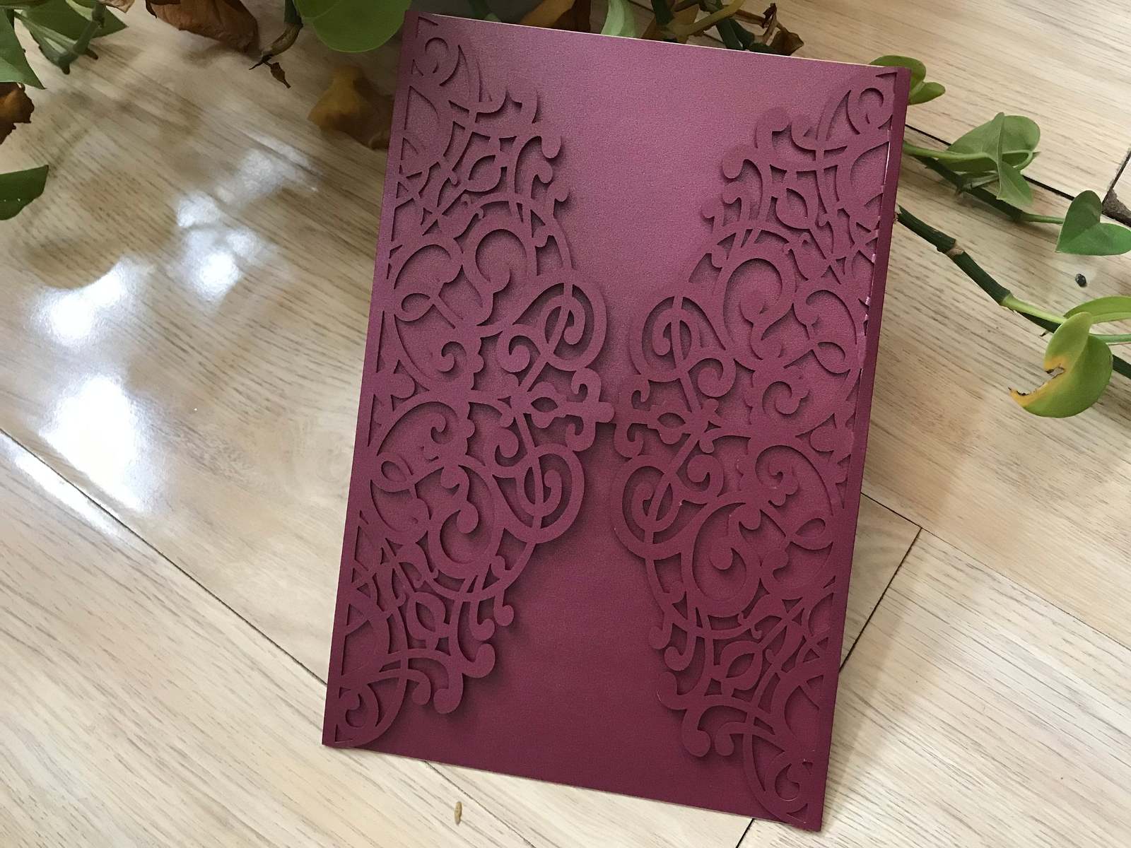 Burgundy Red laser cut wedding invitation,50pcs laser Cut Invitation Card,invite