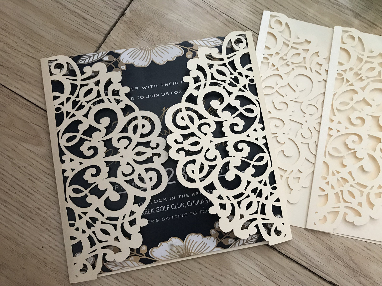 50pcs Pearl Ivory Floral Laser Cut Invitation Cards,Wedding Invitation,Elegant Invitations Cards,Sweet 16 Invitation,Laser Cut Wedding Cards