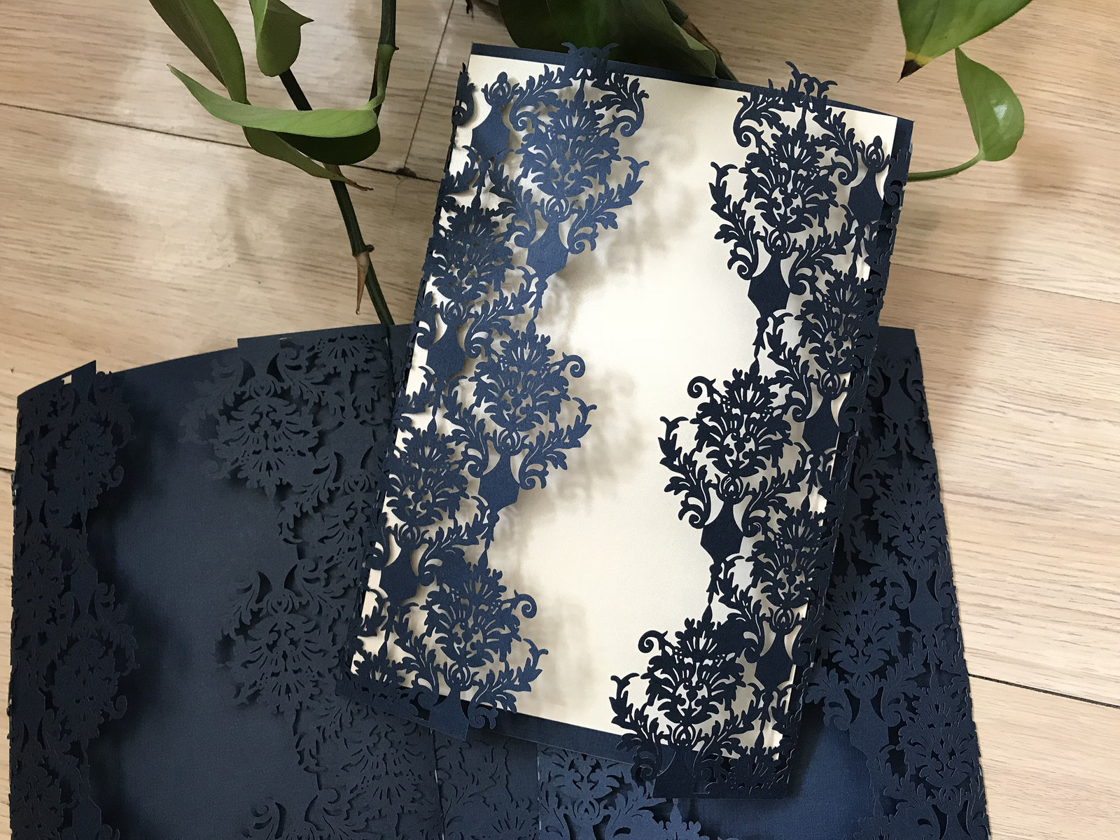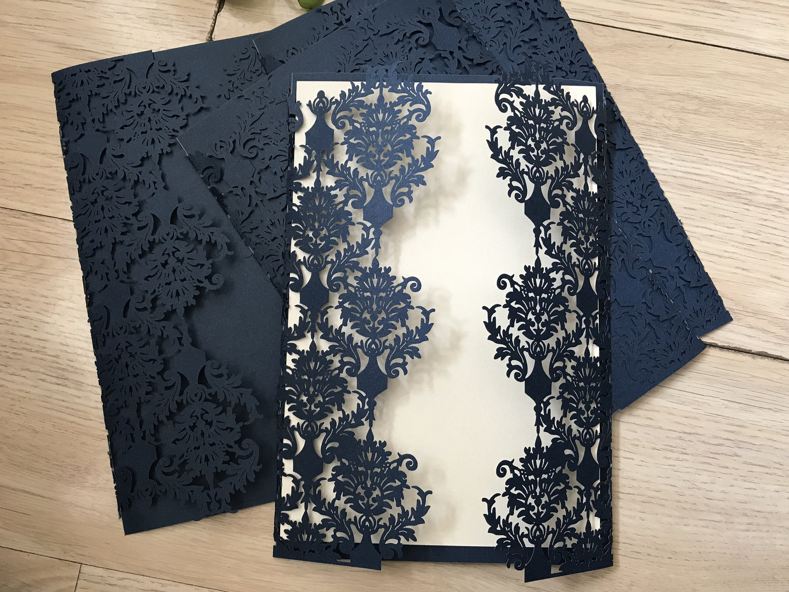 50pcs Dark Navy Blue Wedding Invitation,Laser Cut Wedding Cards,Invitation Cards,,invite Card,Engagement Shower Invitation,Birthday Invite
