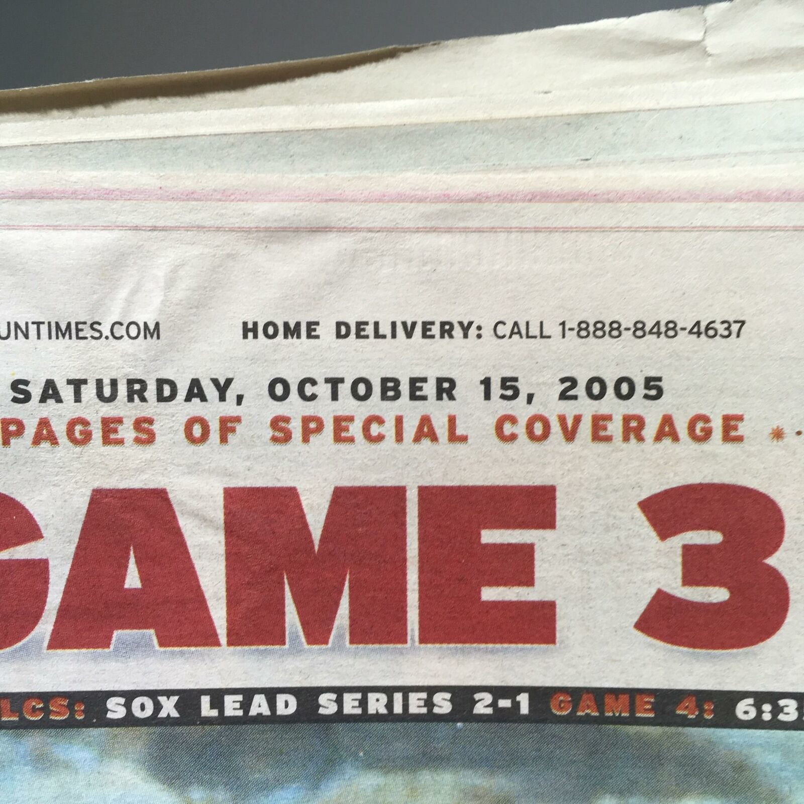 Chicago Sun-Times: Oct 15 2005 No-Doubter Game 3 Chicago Whitesox World Series