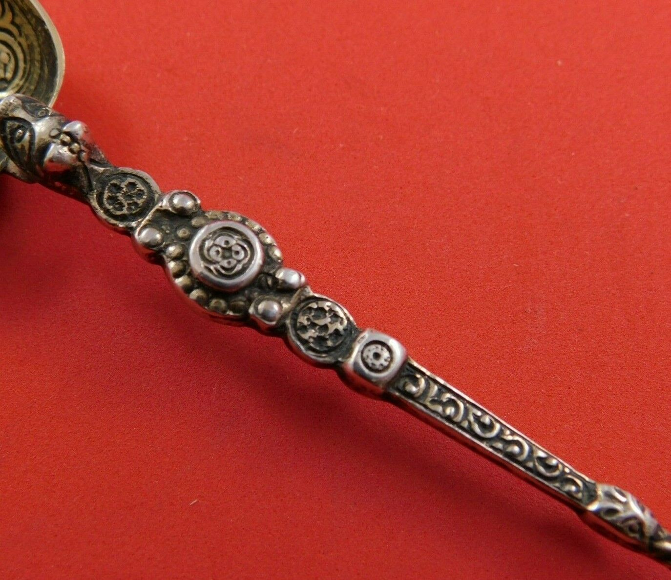 English estate sterling silver Coronation Spoon Vermeil 4 7/8", Chester 1907 by Cornelius Saunders and Frank Shepherd. It is not monogrammed and is in excellent condition.