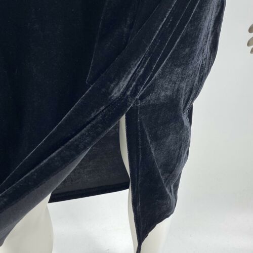 Amaryllis Velour Skirt Sz XL Black Tie Waist Front Slit Solid Below Knee Womens