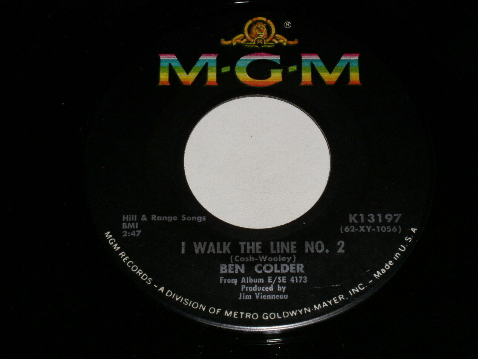This is an original 45 rpm phonograph record by Ben Colder, entitled "I Walk The Line No. 2". Flipside: "Talk Back Blubberin' Lips". Record label: MGM K13197.