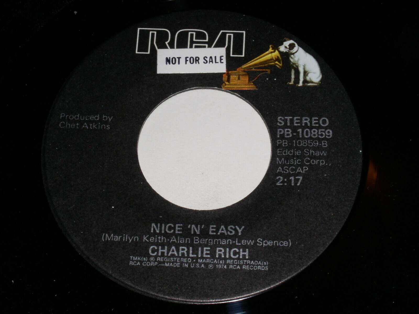 This is an original 45 rpm phonograph record by Charlie Rich, entitled "My Mountain Dew". Flipside: "Nice "N" Easy". Record label: RCA PB-10859. Comes with the original RCA paper sleeve, making this all the nicer. Not stated on label as a promotional issue, but please note the "not for sale" sticker.