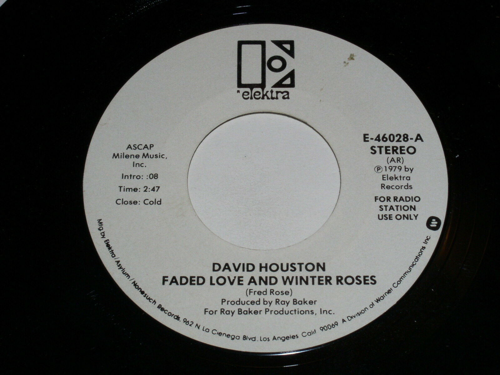 This is an original, promotional 45 rpm phonograph record by David Houston, entitled "Faded Love And Winter Roses". Flipside: "Beyond The blue Horizon". Record label: Elektra E-46028.