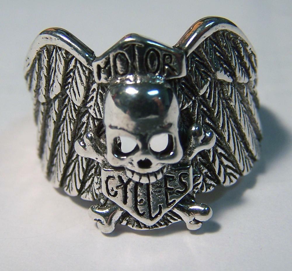 SKULL WITH WINGS MOTORCYCLES SILVER BIKER RING #100 mens NEW jewelry RINGS HEAVY